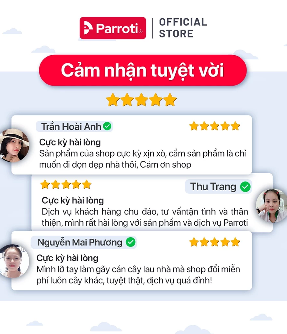 • Parroti đảm bảo sản phẩm đúng như mô tả và hình ảnh