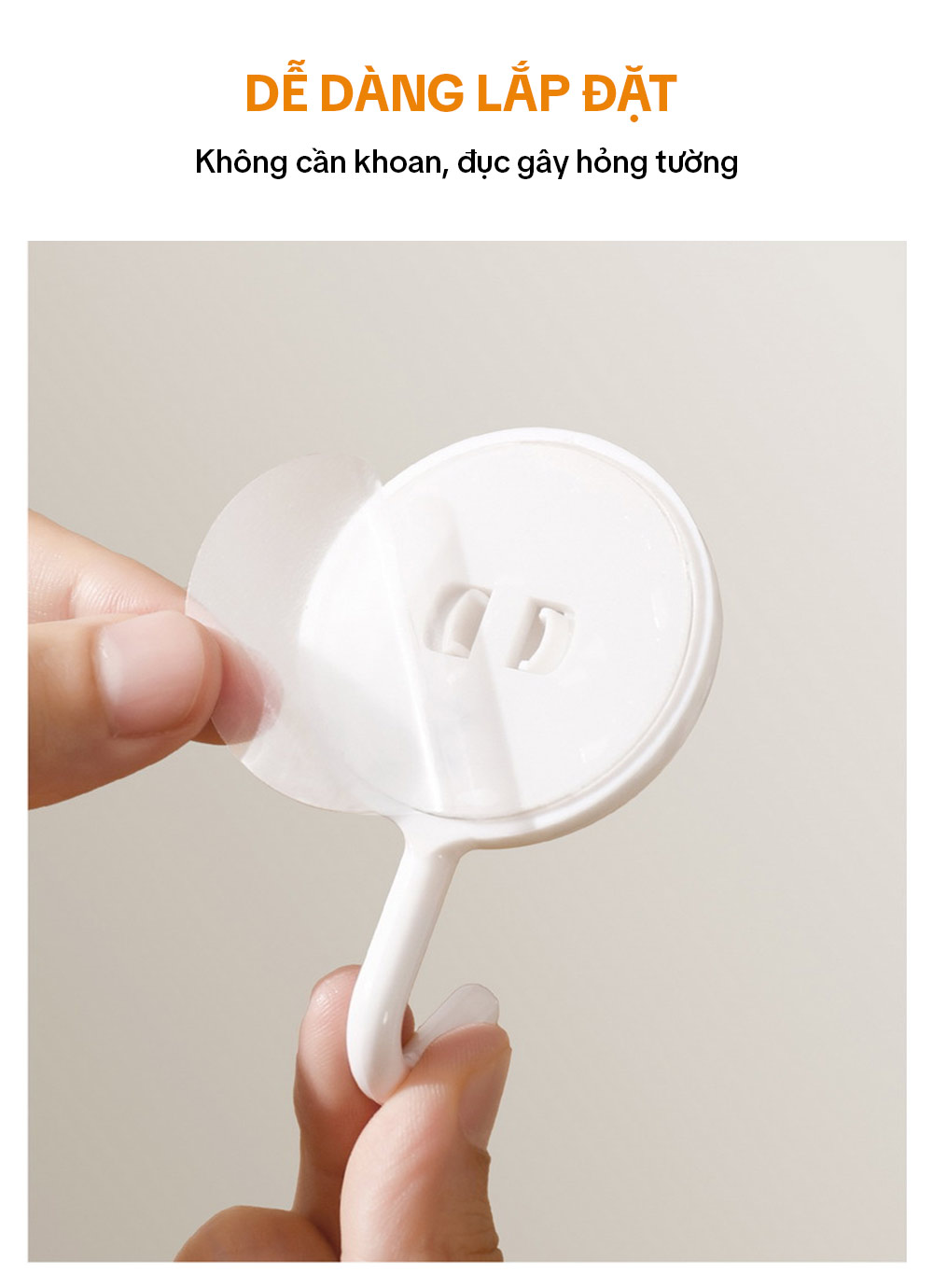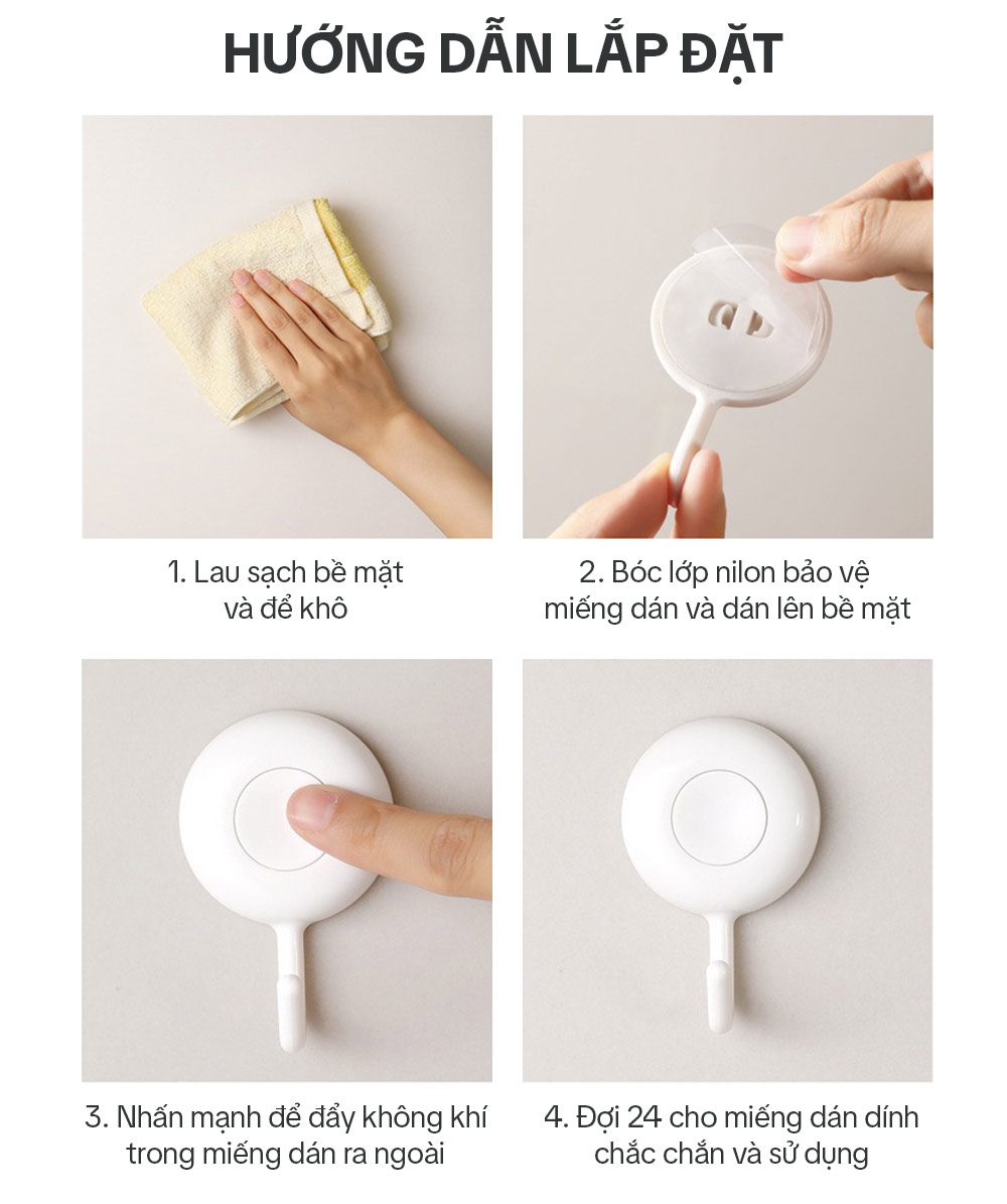 – Bước 3: Sử dụng móc treo sau khi dán 12 tiếng để đảm bảo miếng dán được chắc chắn nhất.