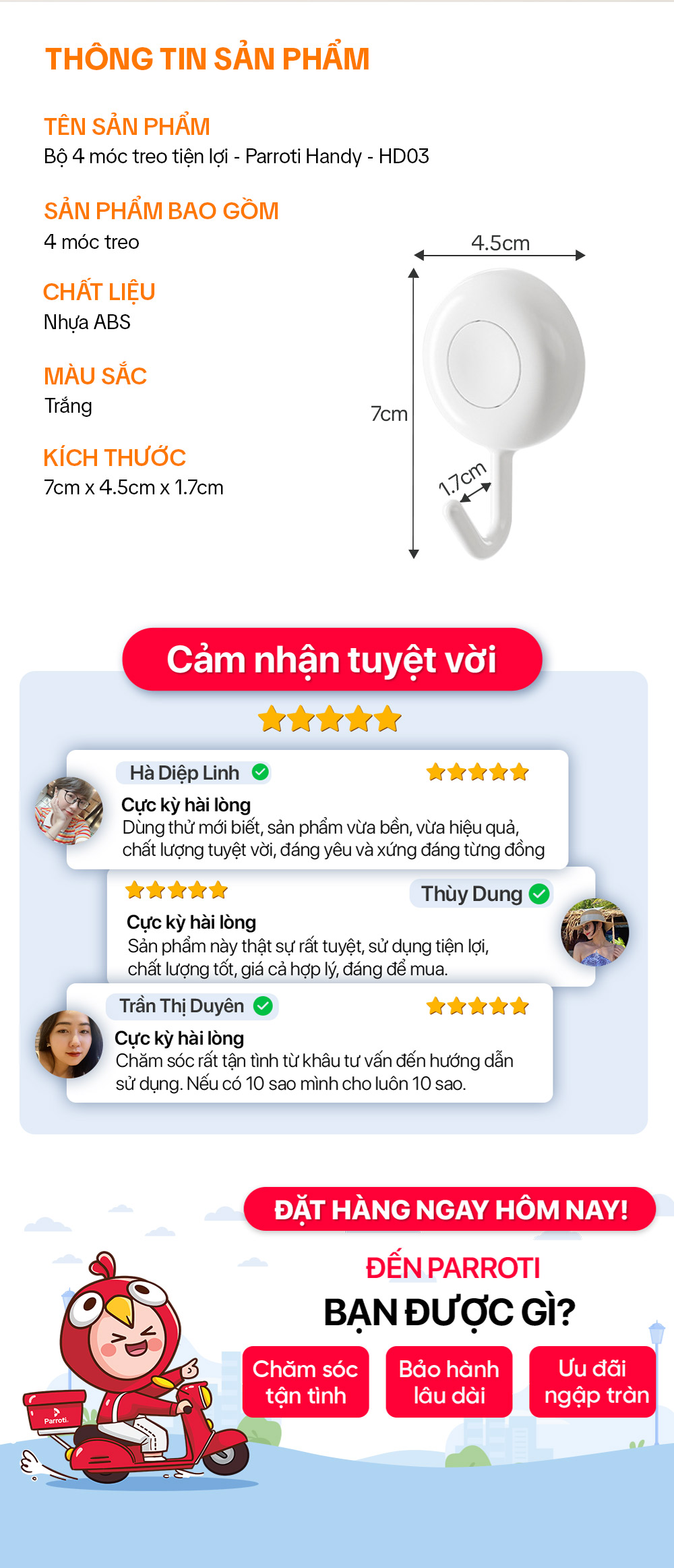 Parroti đảm bảo sản phẩm đúng như mô tả và hình ảnh