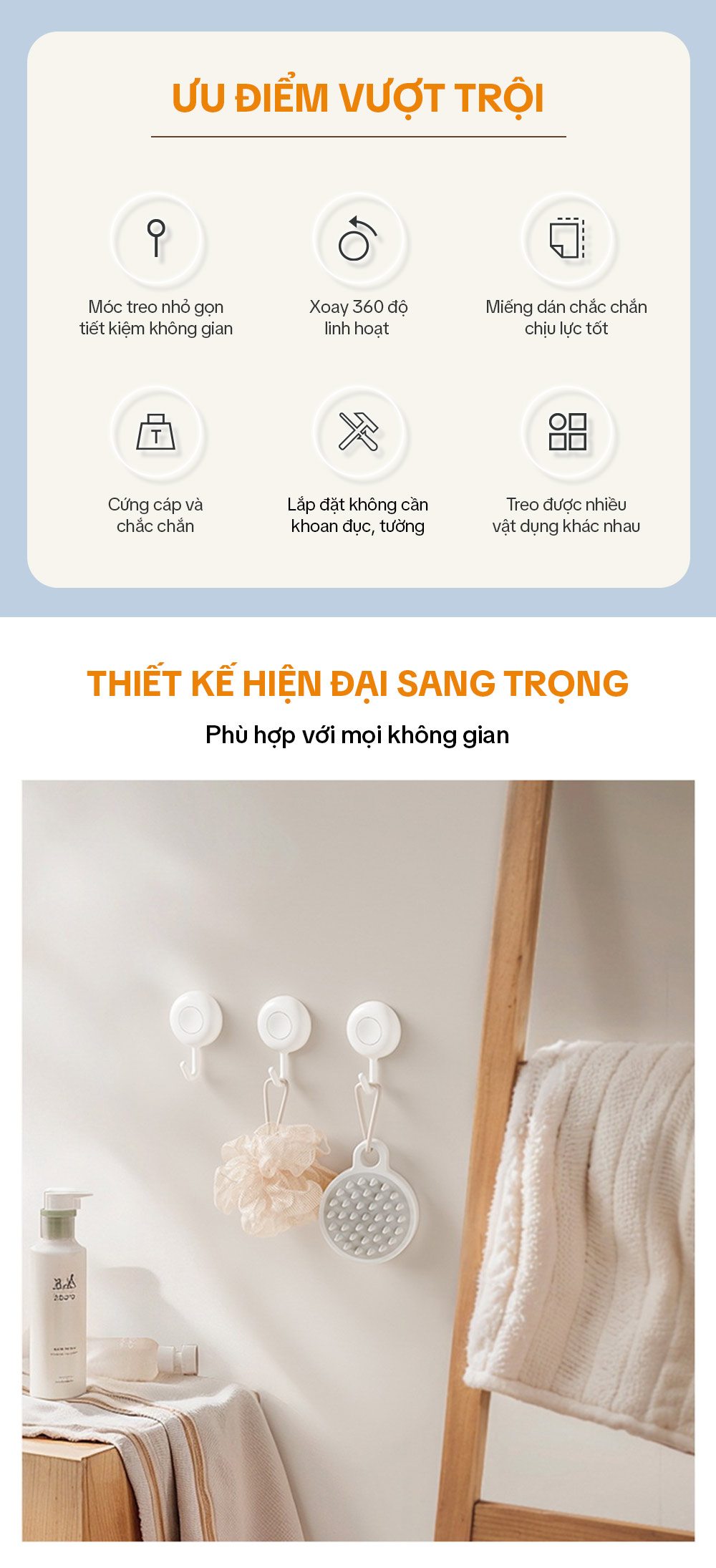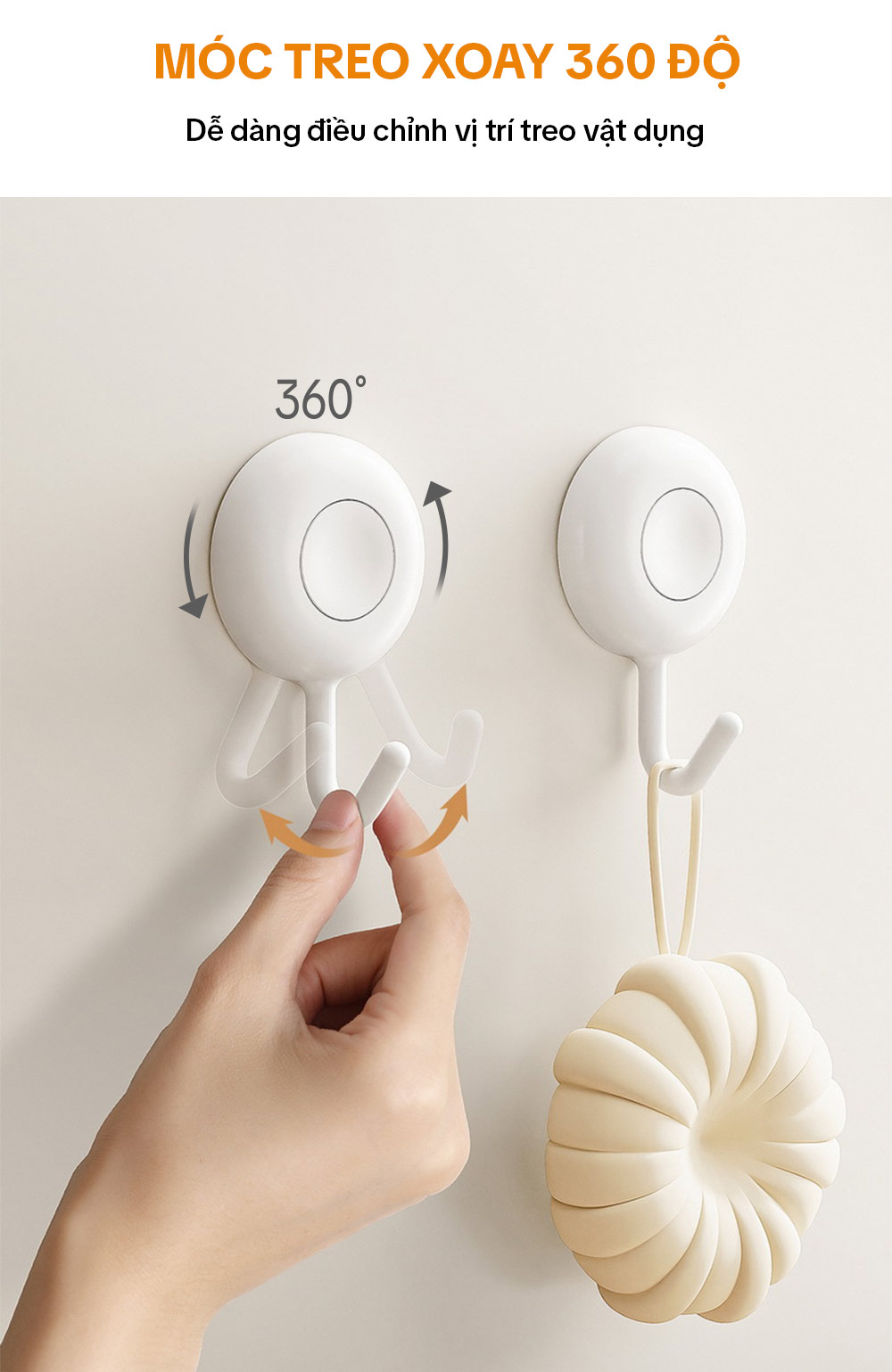 – Móc có thể xoay 360 độ giúp đa năng hơn khi kết hợp 2 móc treo với nhau