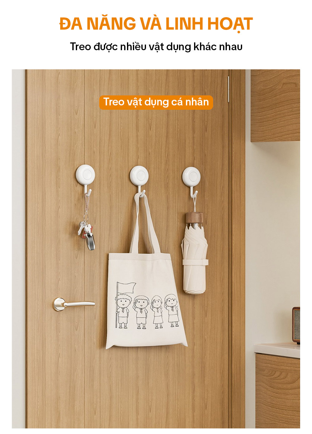 – Treo được nhiều dụng cụ khác nhau như chìa khóa, ô dù, mũ hoặc các đồ dùng trong nhà bếp, nhà tắm,toillet.