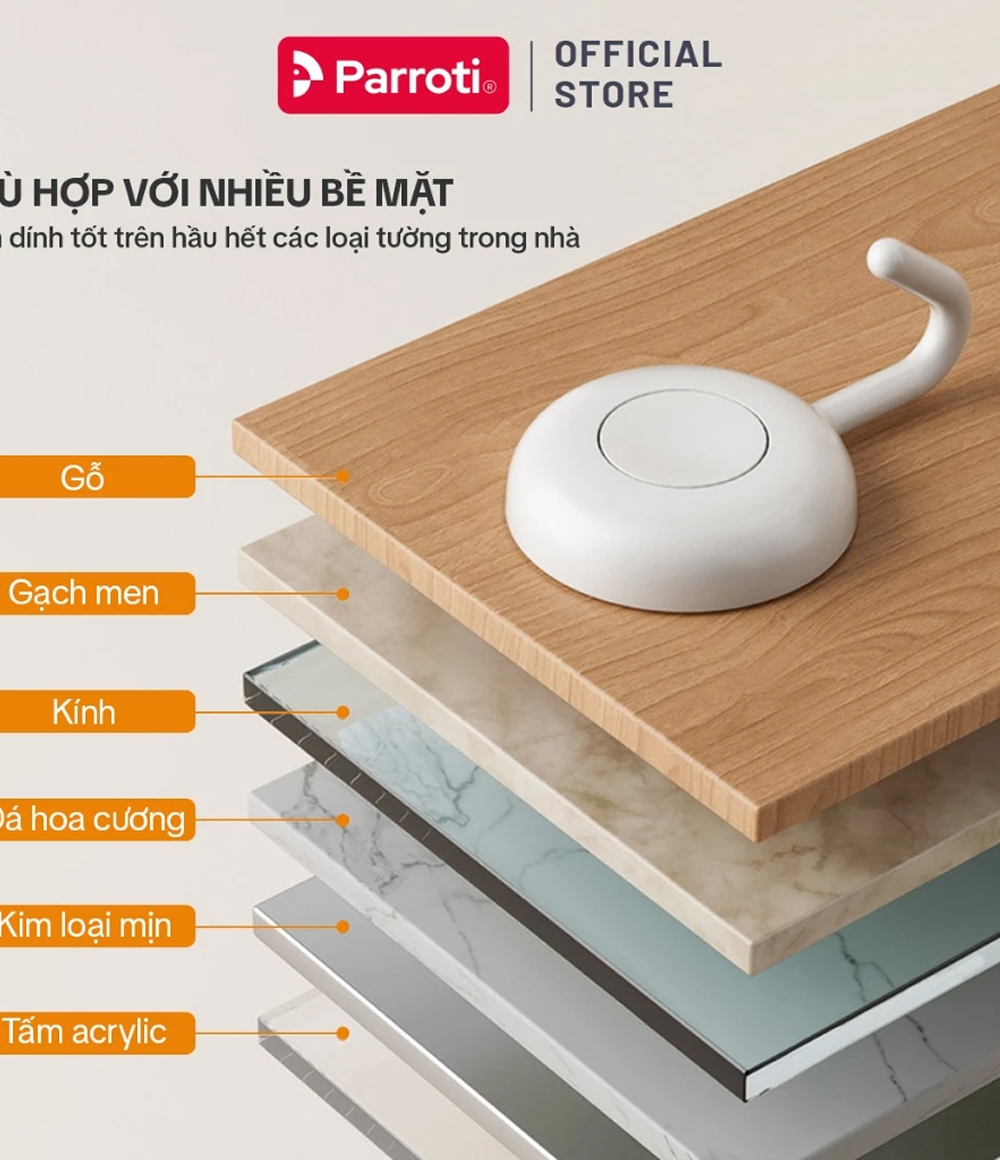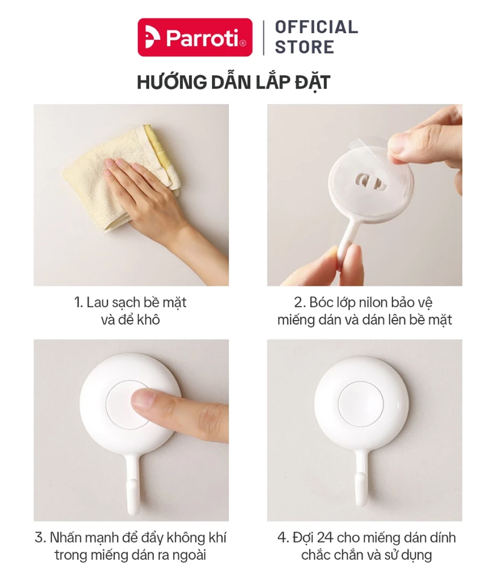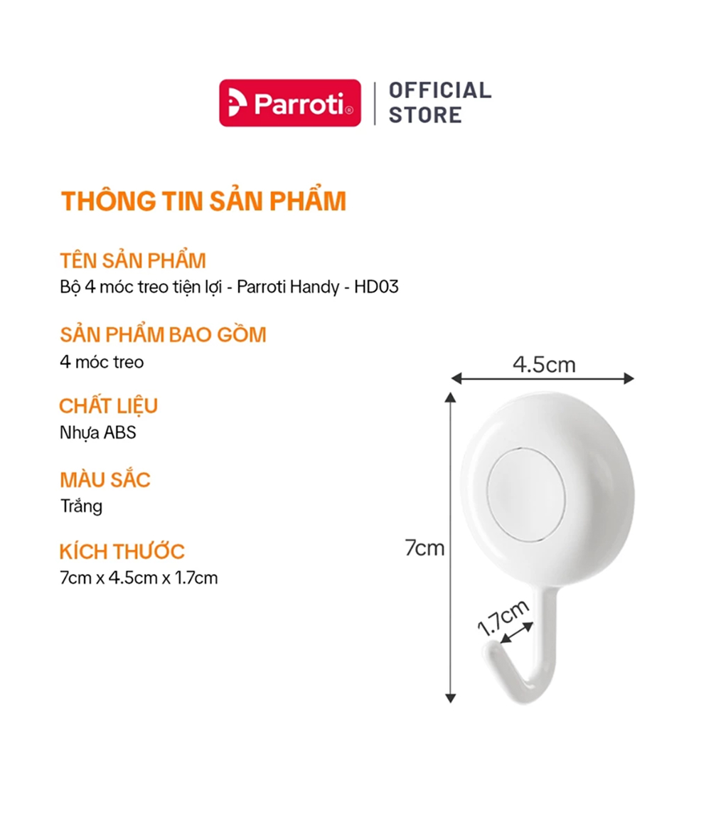 Bộ 4 chiếc móc treo dán tường đa năng Parroti Handy HD03