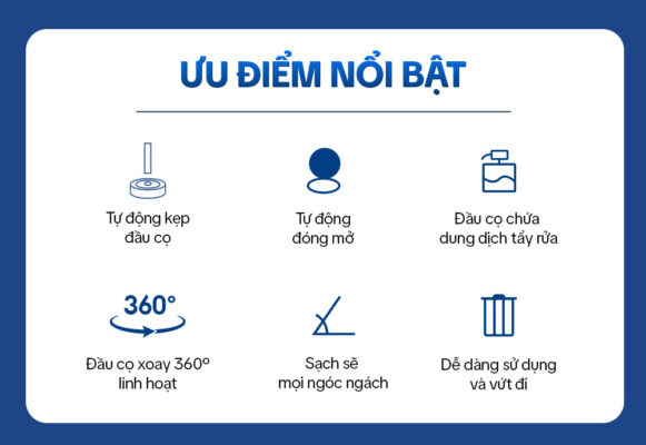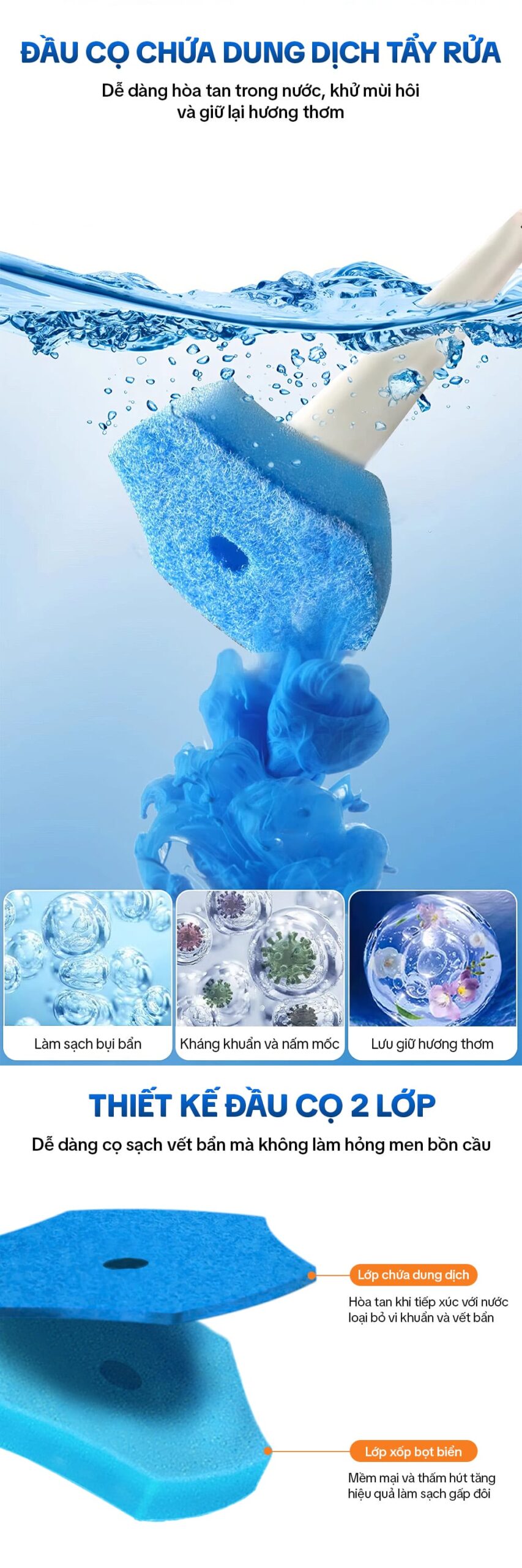 – Đầu cọ chứa dung dịch tẩy rửa dễ dàng hòa tan trong nước và khử mùi hôi.