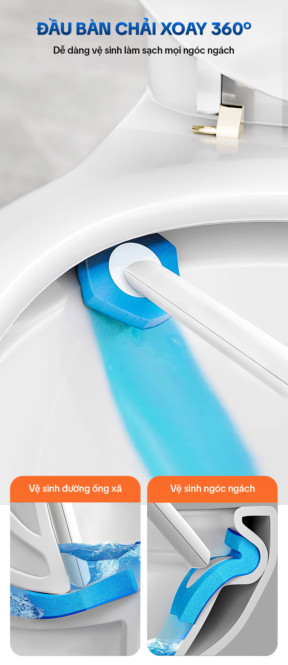 – Thiết kế đầu cọ 2 lớp dễ dàng cọ sạch mà không hỏng men bồn cầu.