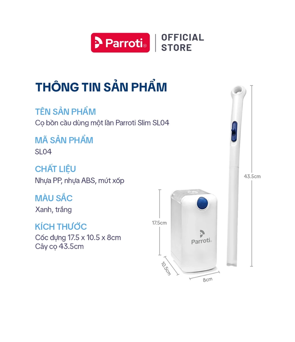 – Tên sản phẩm: Cây Cọ Bồn Cầu Dùng Một Lần 2 Trong 1, Miếng Lau Có Chất Tẩy Rửa Hương Thơm, Dán Tường Parroti Slim – SL04