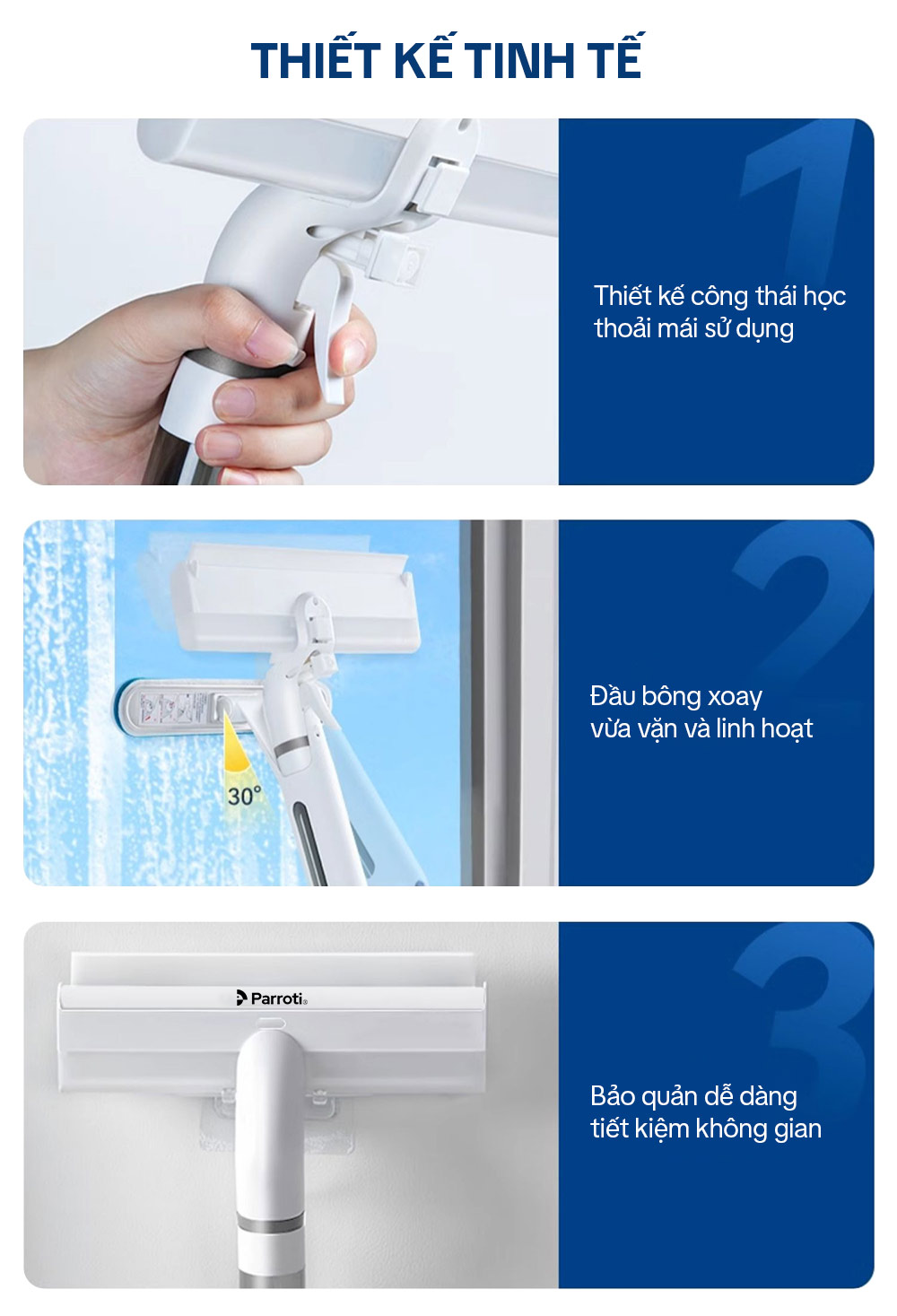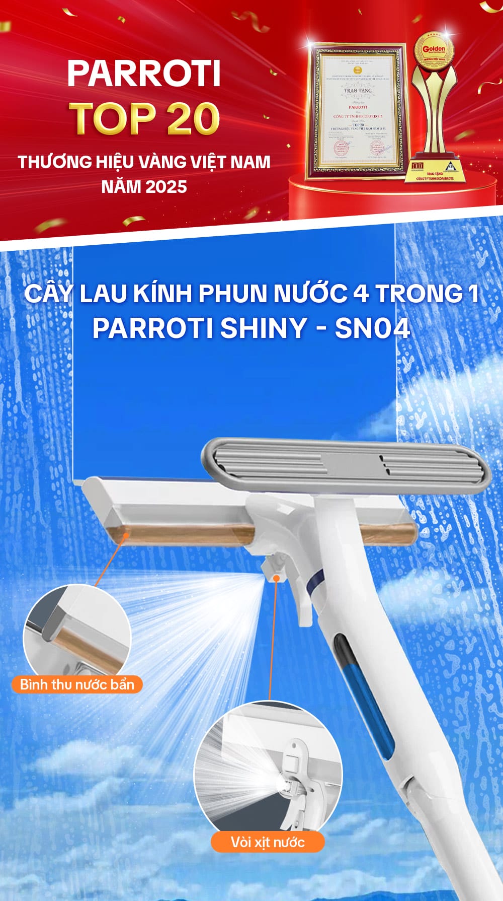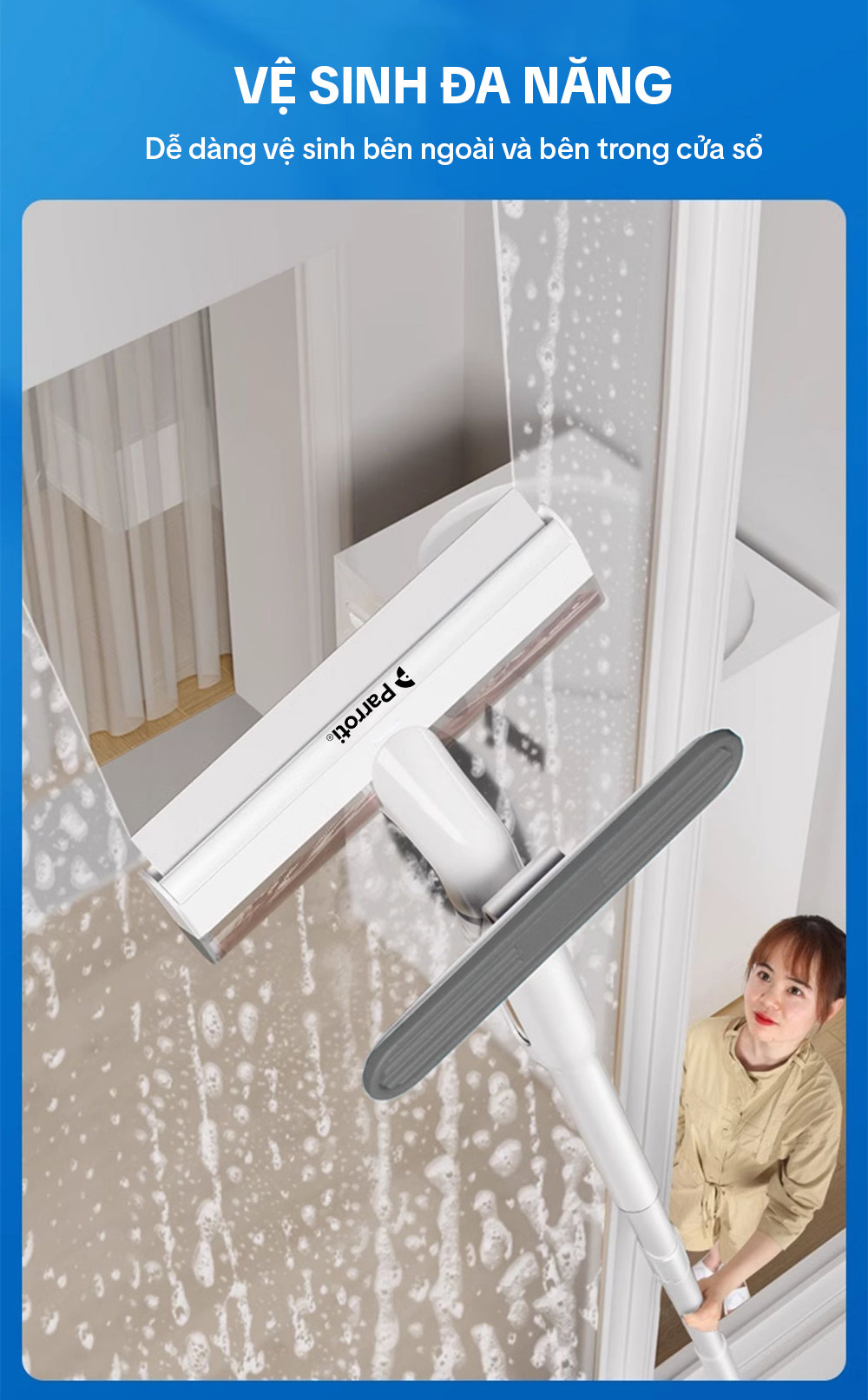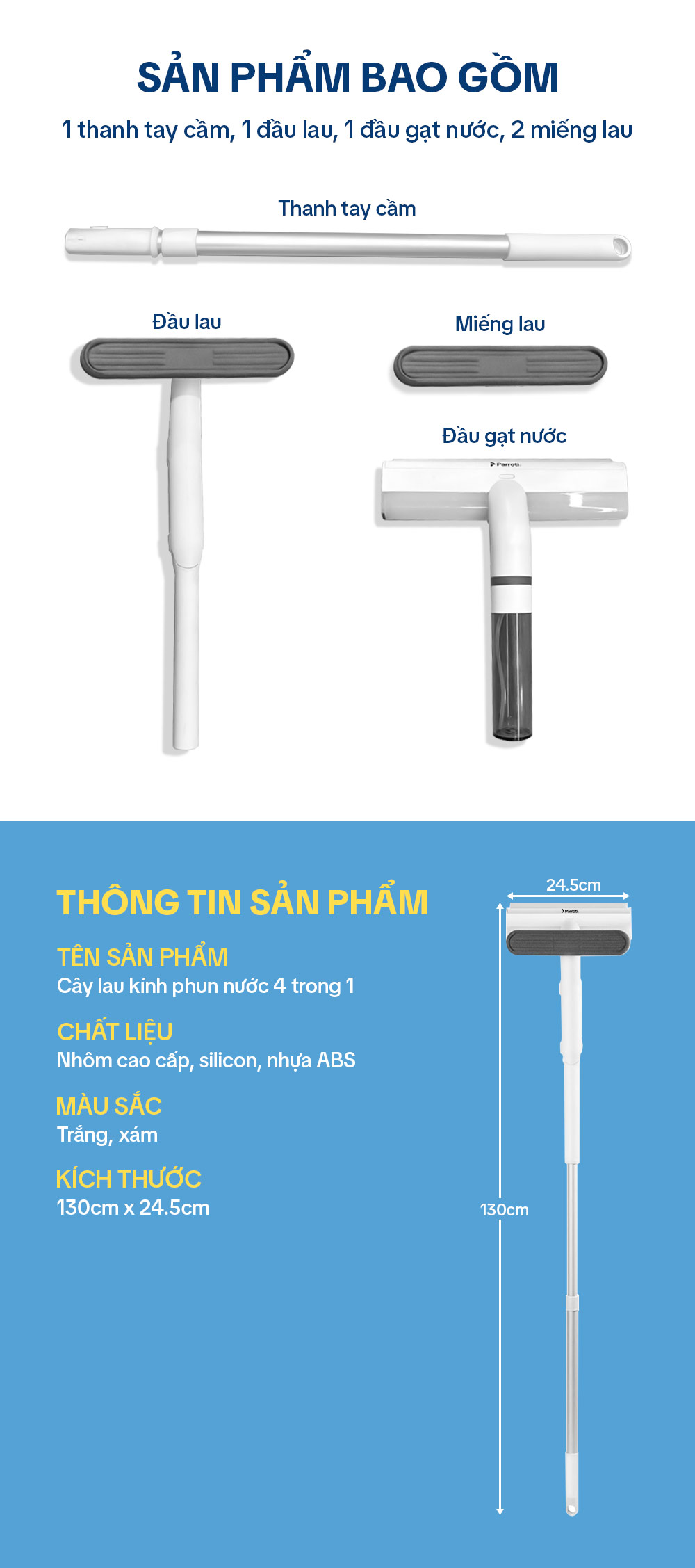 – Tên sản phẩm: Cây lau chùi kính 4 trong 1 Parroti Shiny SN04