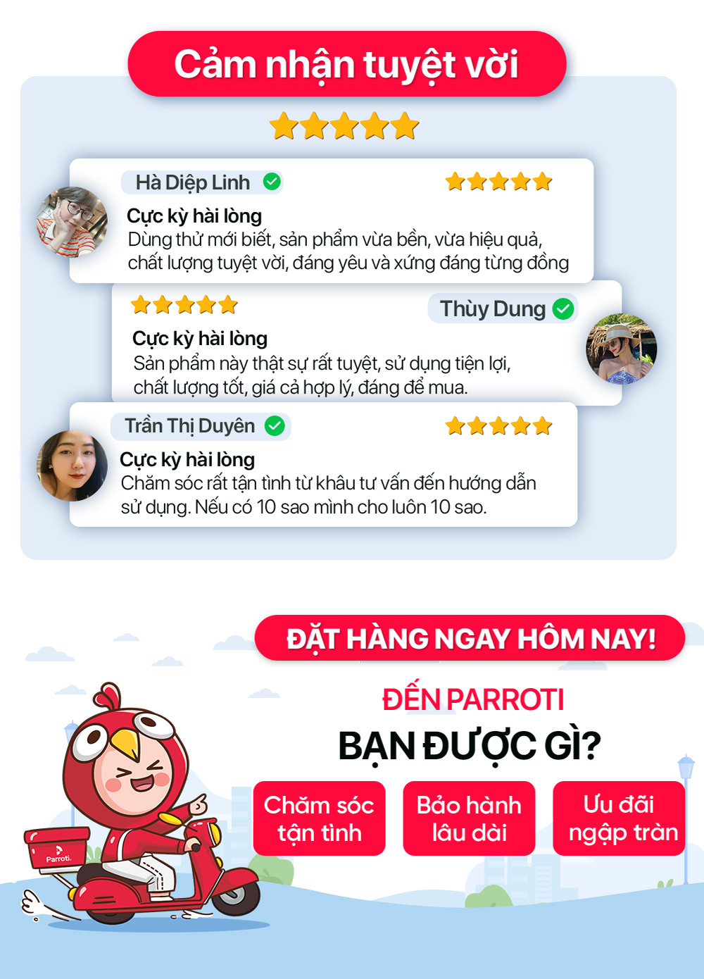 Parroti đảm bảo sản phẩm đúng như mô tả và hình ảnh
