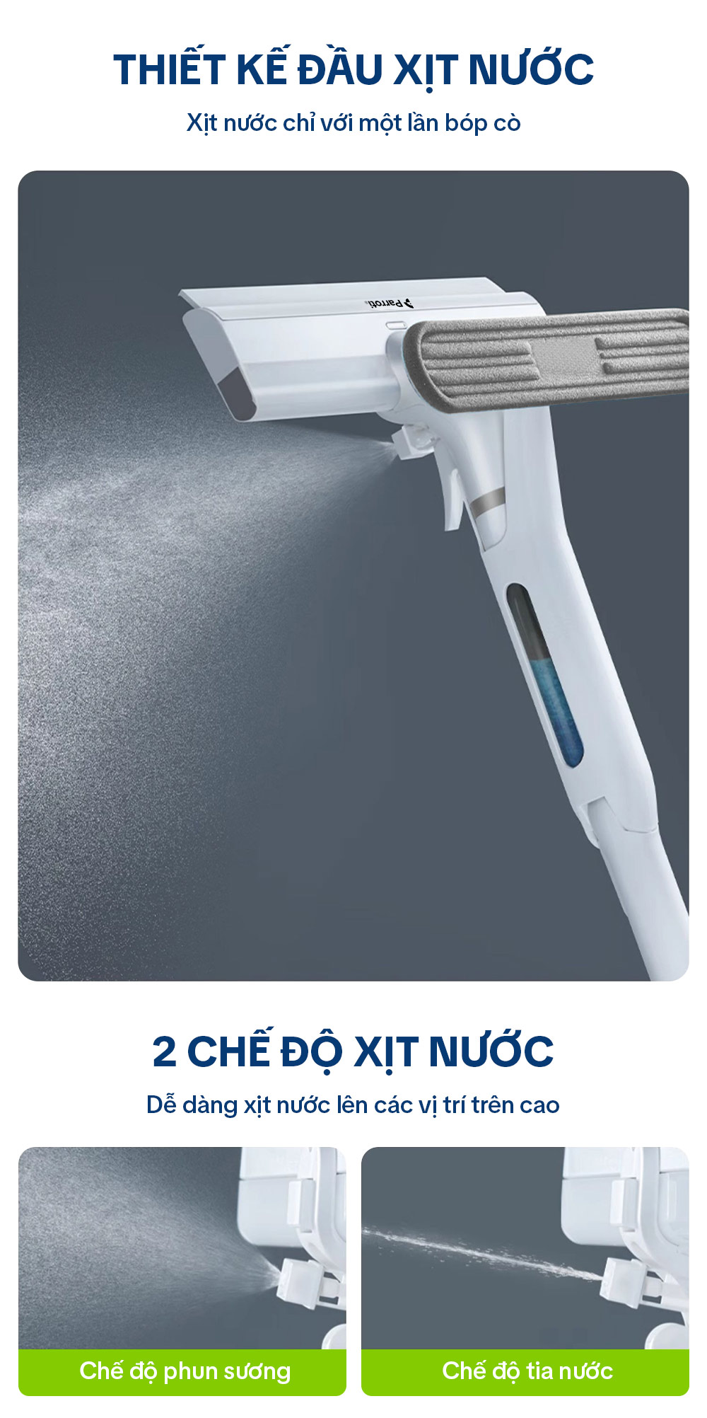 Câu lau kính phun sương, tích hợp gạt nước, thu nước bẩn Parroti Shiny SN04