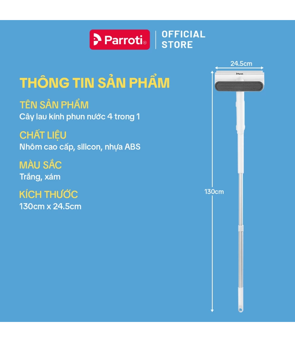 – Tên sản phẩm: Cây lau chùi kính 4 trong 1 Parroti Shiny SN04