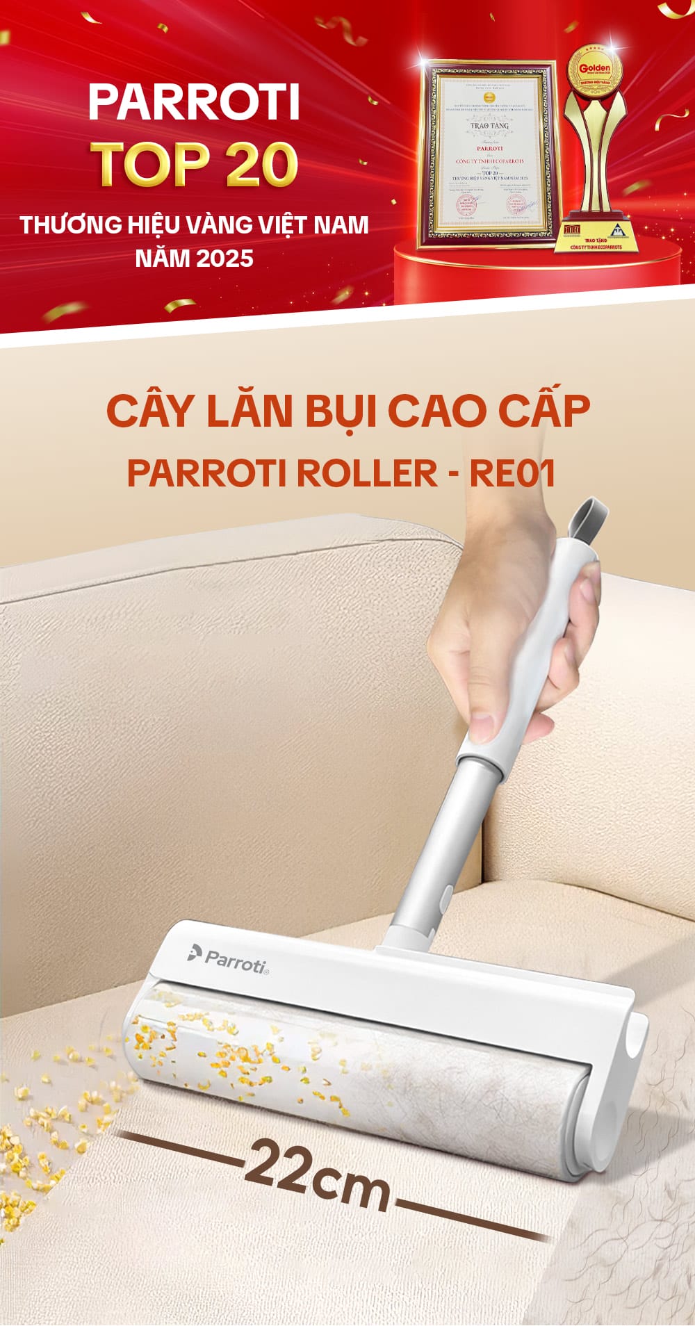 – Tên sản phẩm: Cây lăn bụi cán nhôm cao cấp Parroti Roller – RE01