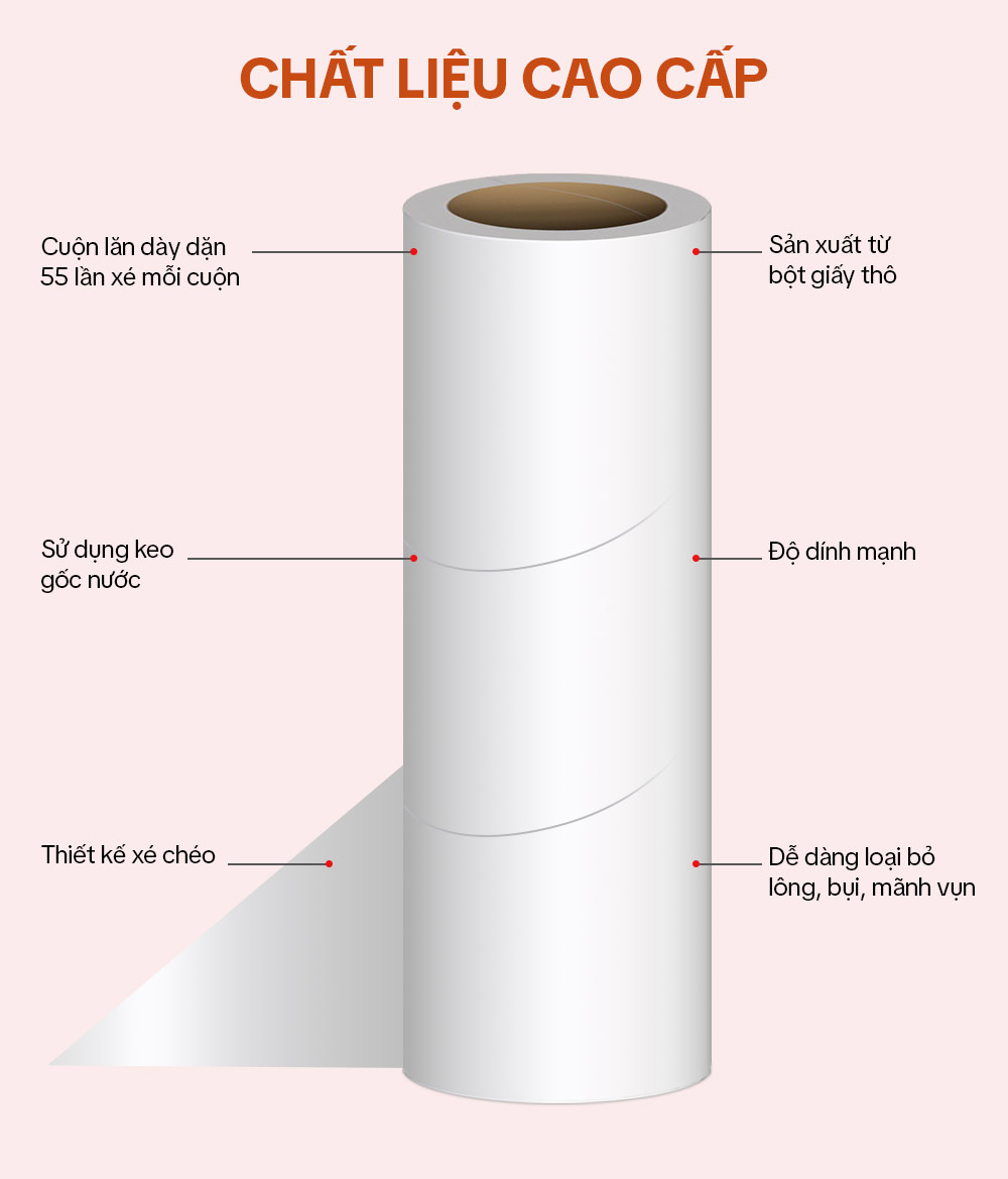 – Lõi lăn gồm 55 lớp siêu dính tương đường 55 lần sử dụng – tối ưu chi phí