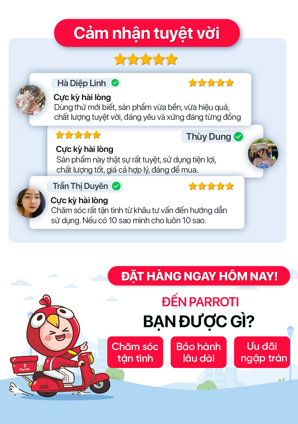 (*) Lưu ý: Bạn có thể tham khảo kỹ hơn ở phần mô tả sản phẩm ( Video) hoặc đừng ngần ngại liên hệ CSKH Parroti để được hướng dẫn và hỗ trợ một cách tốt nhất