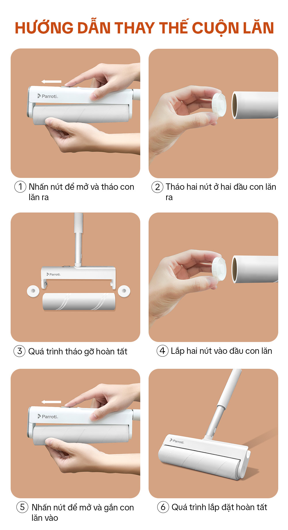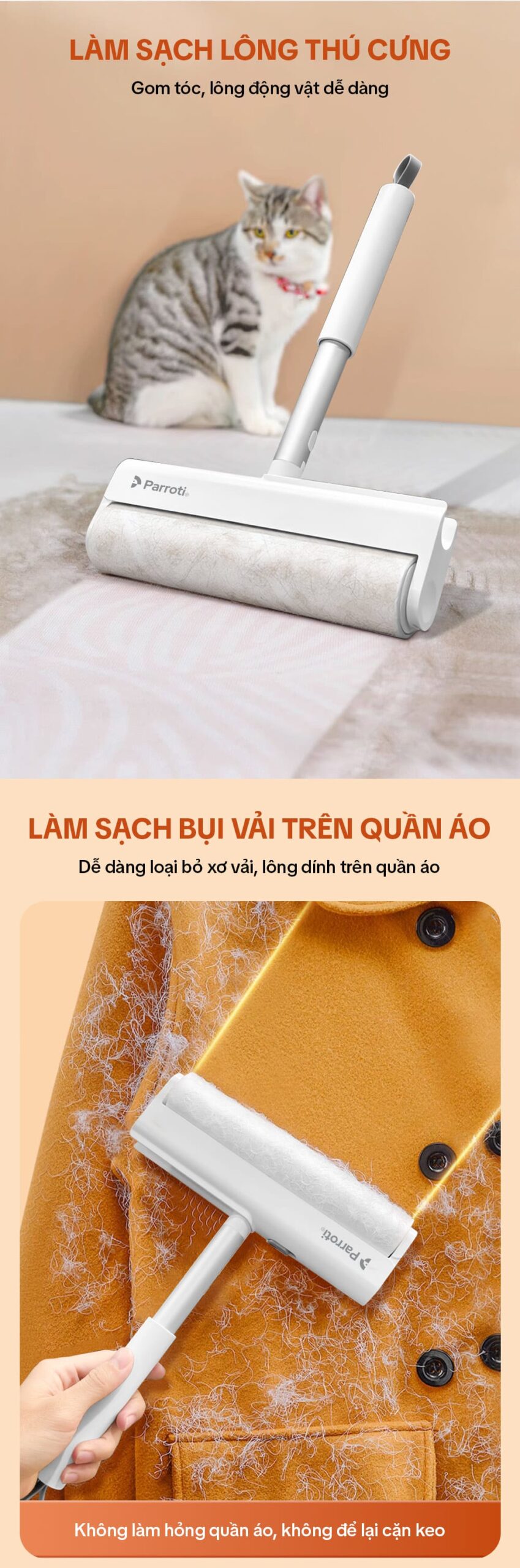 Cây lăn bụi quần áo, ga giường, đầu lăn có thể thay thế Parroti Roller RE01