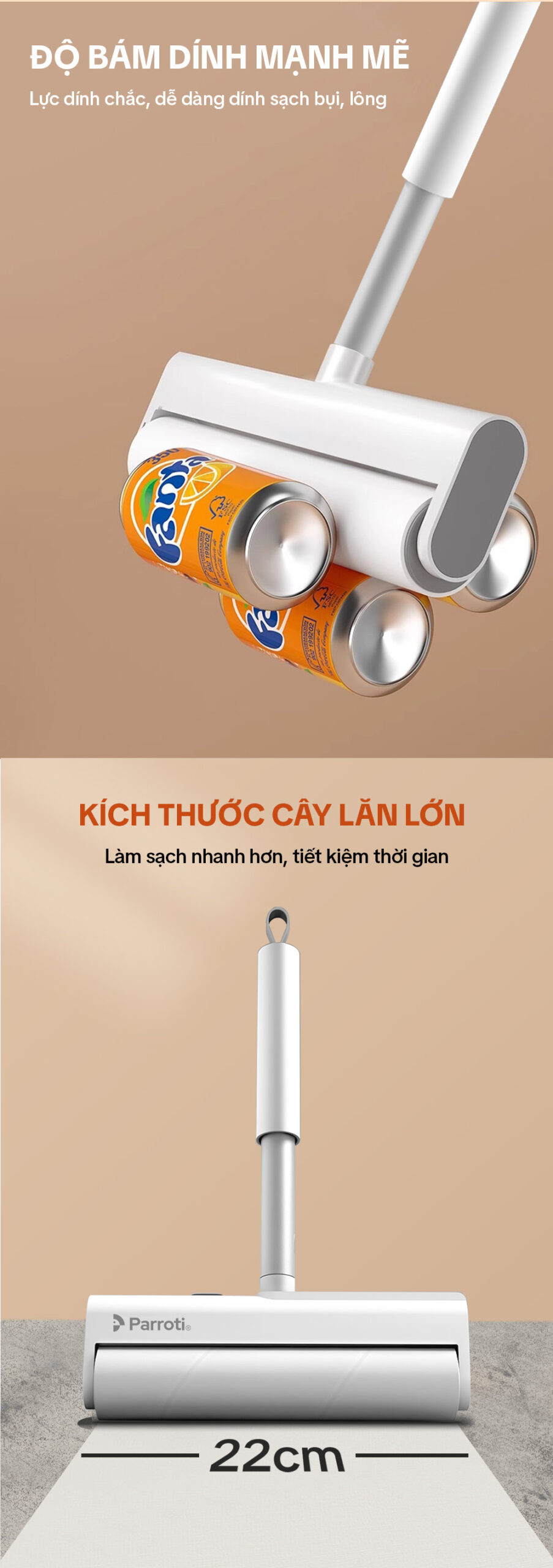– Lõi Lăn dài 22 cm dài gấp 1.5 lần so với các loại lăn bụi thông thường giúp tiết kiệm thời gian