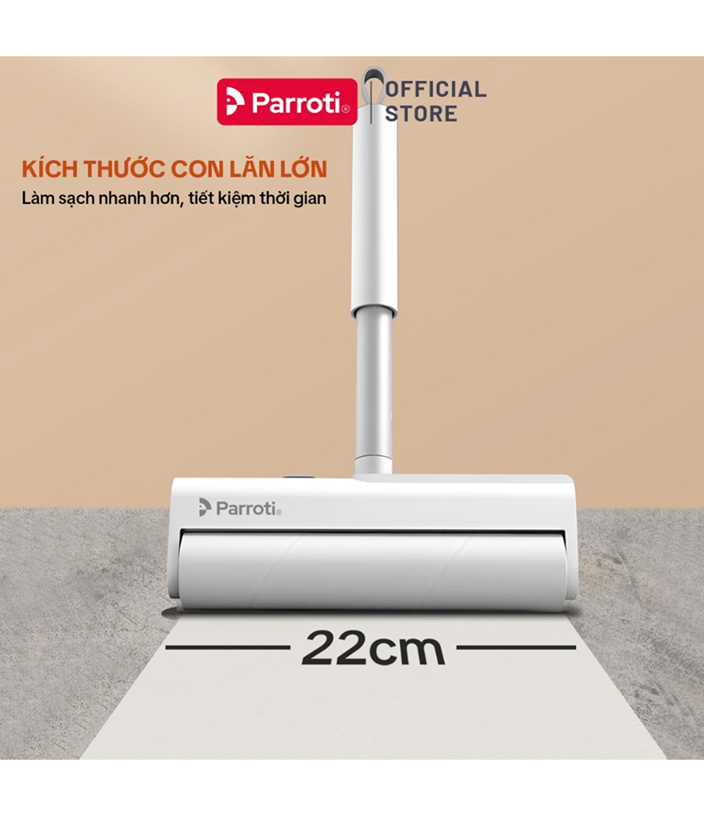 – Lõi Lăn dài 22 cm dài gấp 1.5 lần so với các loại lăn bụi thông thường giúp tiết kiệm thời gian