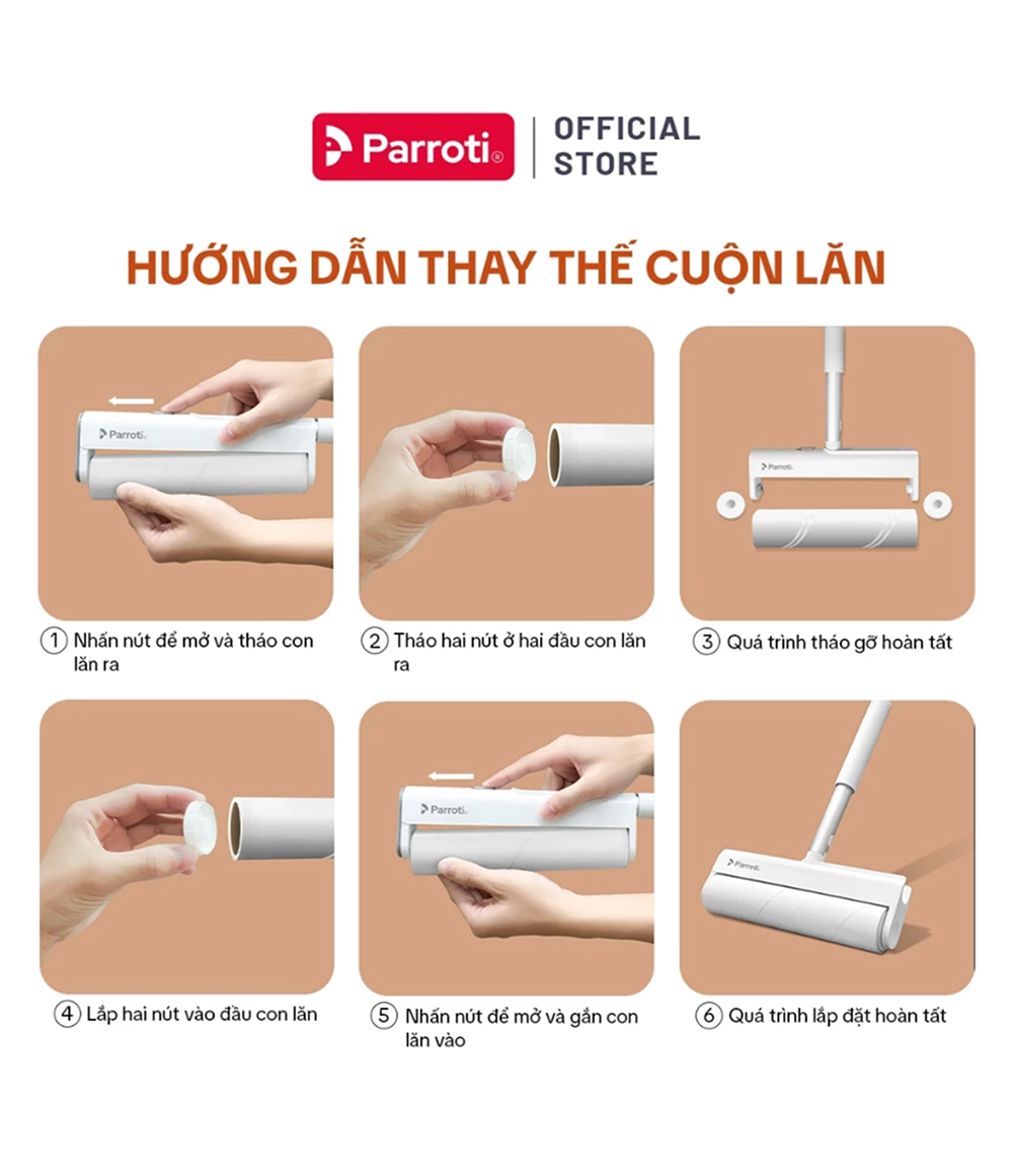 Cây lăn bụi quần áo, ga giường, đầu lăn có thể thay thế Parroti Roller RE01
