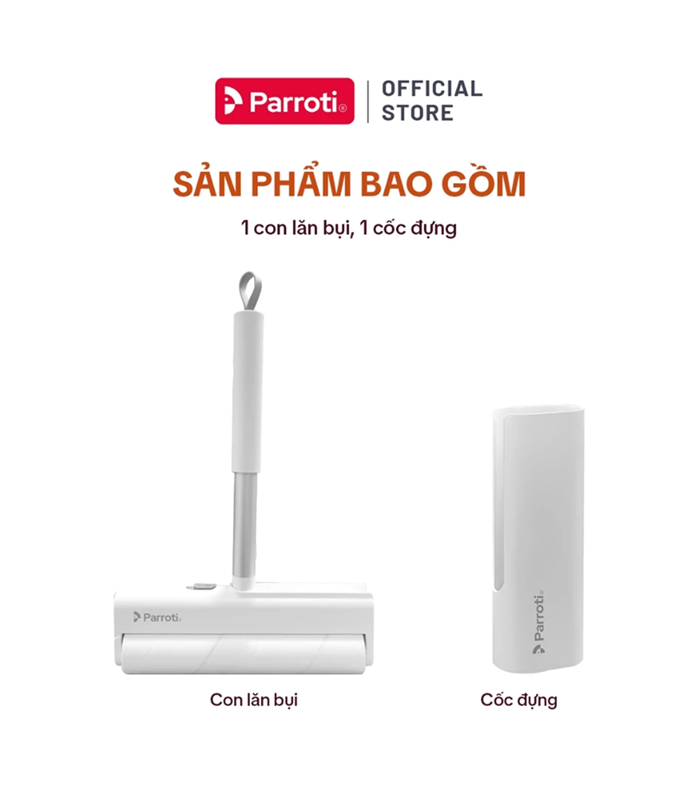 – Bộ sản phẩm gồm: 1 cây lăn bụi, 1 lõi lăn và 1 ống đựng bảo quản lõi lăn