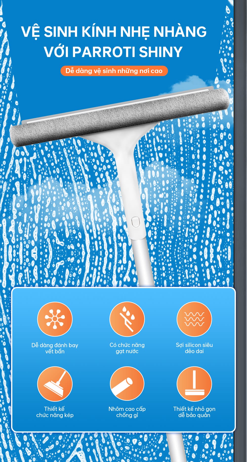 – Tên sản phẩm: Cây lau chùi kính 2 trong 1 Parroti Shiny SN01