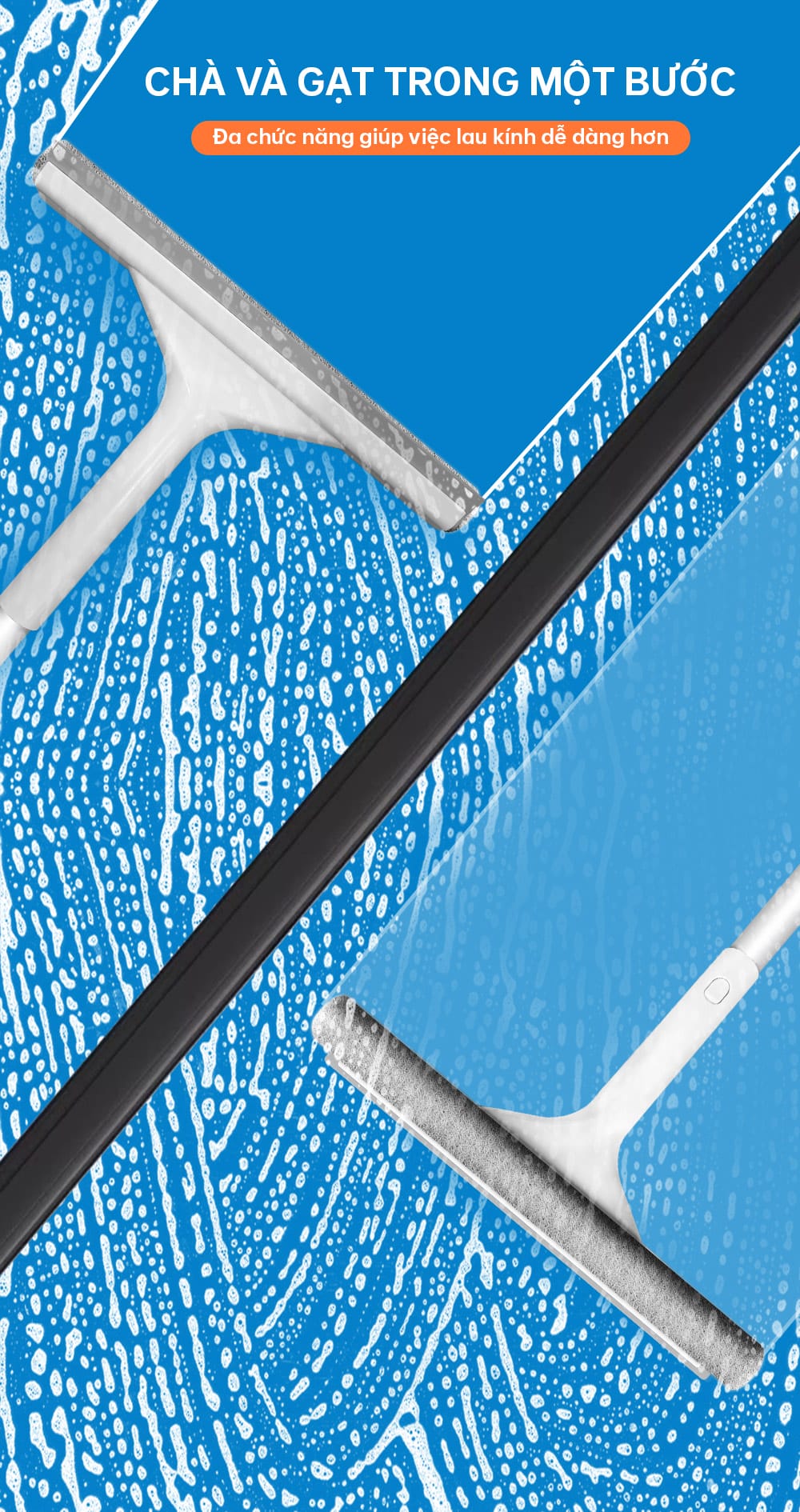 – Thiết kế thông minh 2 trong 1: Có thể vừa chà cọ mặt kính vừa có thể gạt nước và chất bẩn, giúp gương kính nhà bạn luôn khô sạch