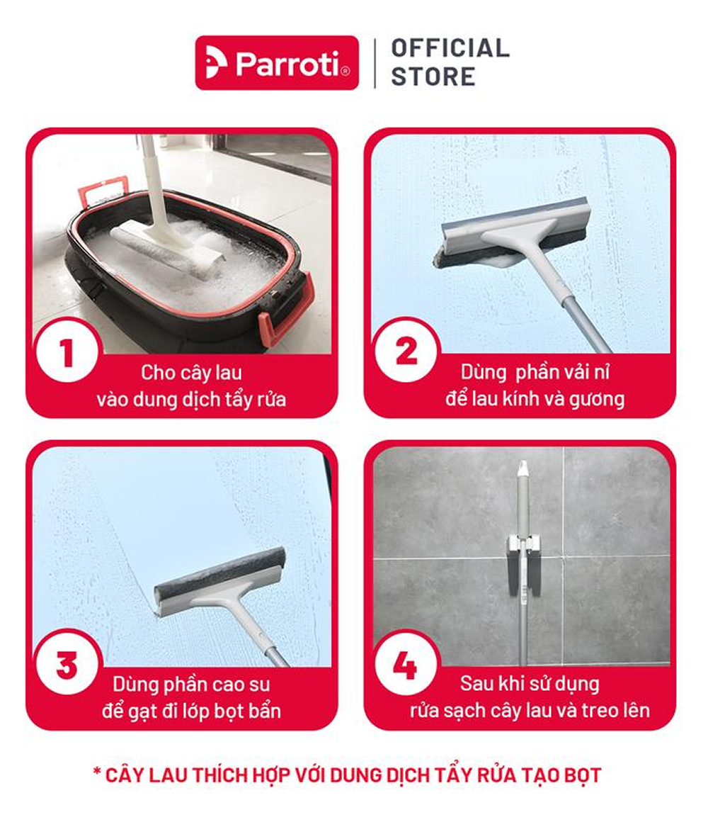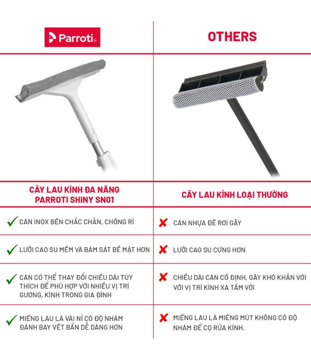 – Tên sản phẩm: Cây lau chùi kính 2 trong 1 Parroti Shiny SN01