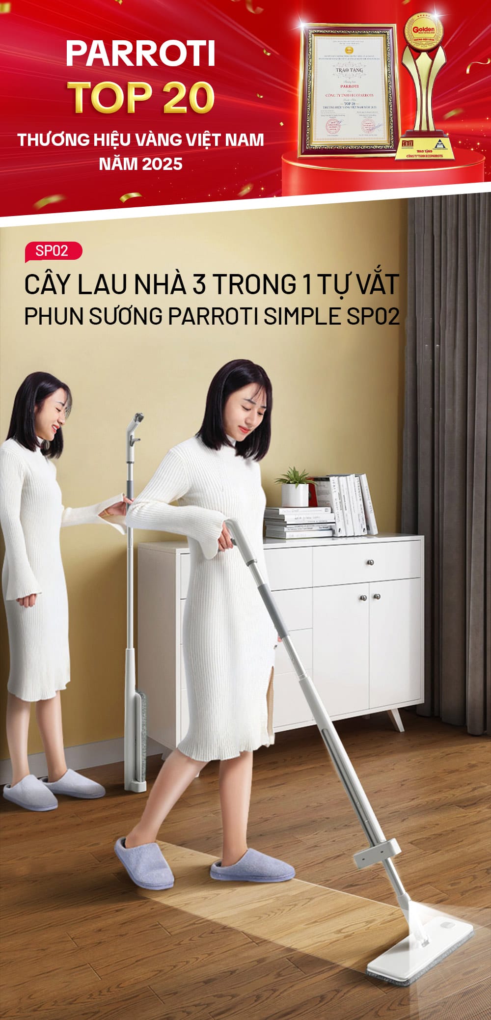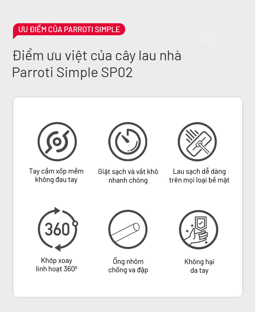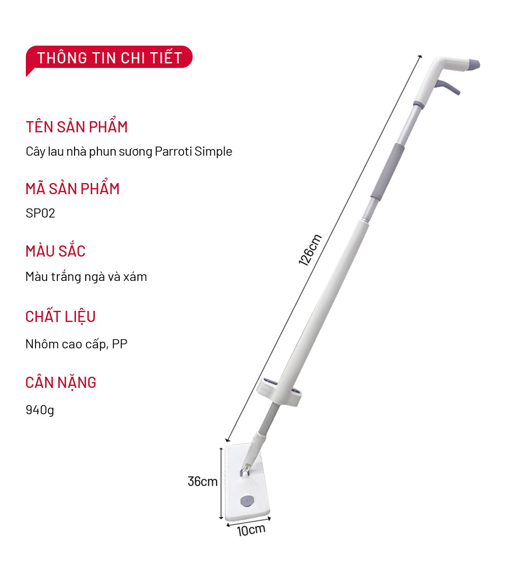 Cây lau nhà phun sương tự vắt thông minh Parroti Simple SP02