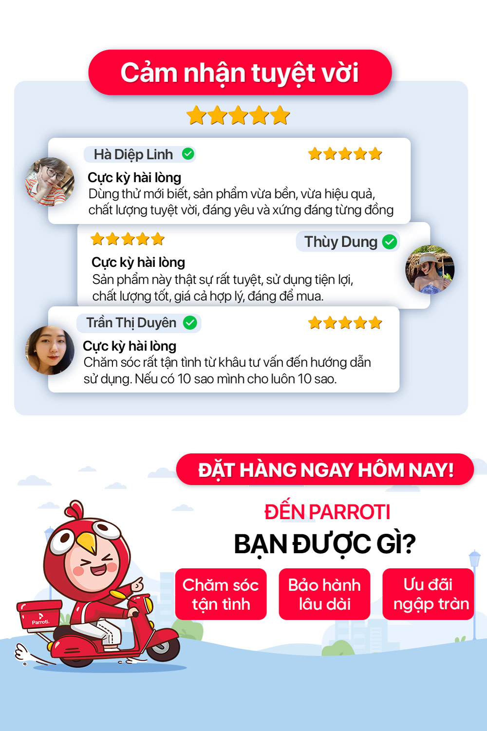 Parroti đảm bảo sản phẩm đúng như mô tả và hình ảnh