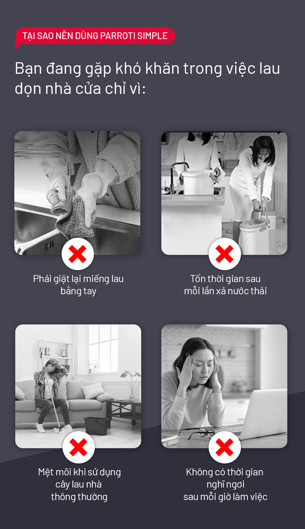 – Lau nhà mà tay không phải chạm nước và hóa chất tẩy rửa, bảo vệ da tay