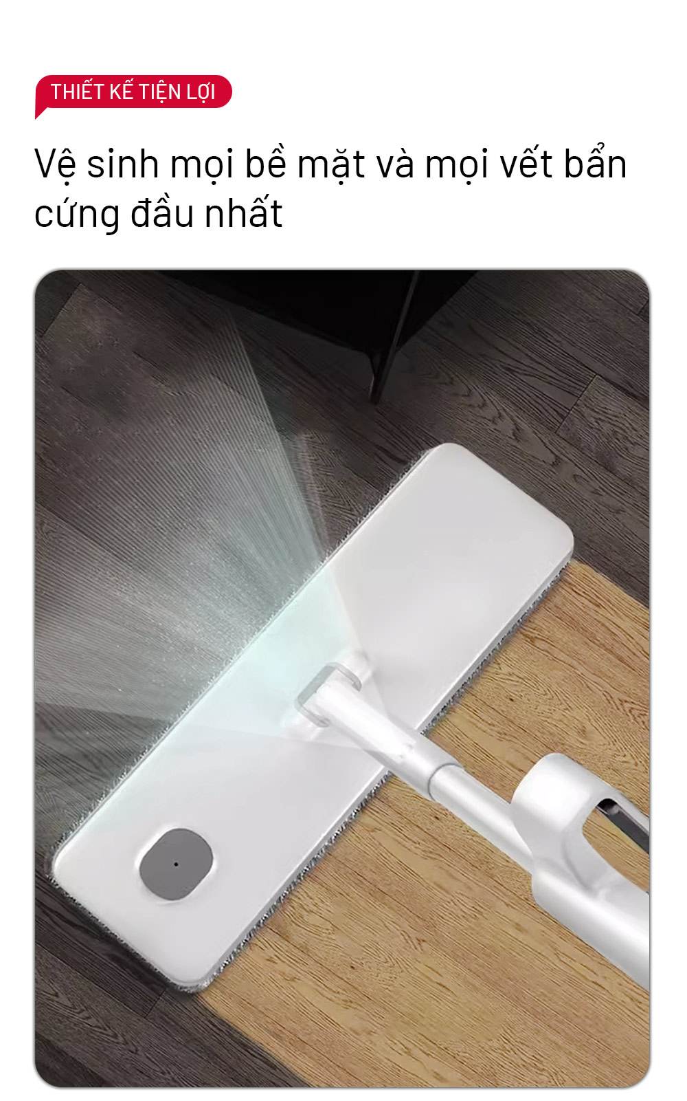 – Bước 3: Sử dụng cò xịt để làm ướt bề mặt cần lau sau đó sử dụng bàn lau lau sạch vết bẩn.