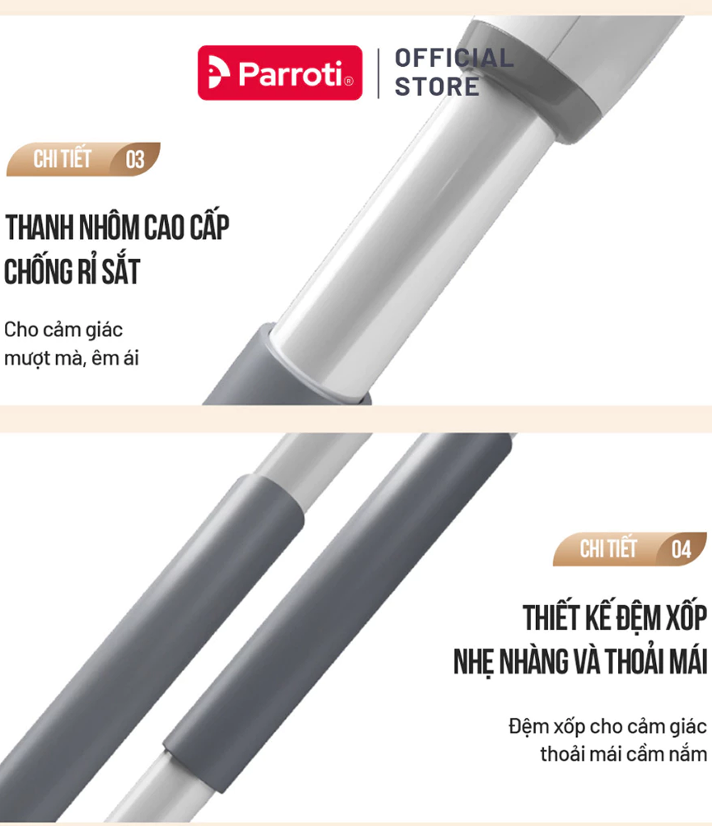 – Bước 1: Sau khi mở hộp sản phẩm cây lau nhà Parroti Simple SP02, bạn lắp ráp các thanh cây lau lại với nhau