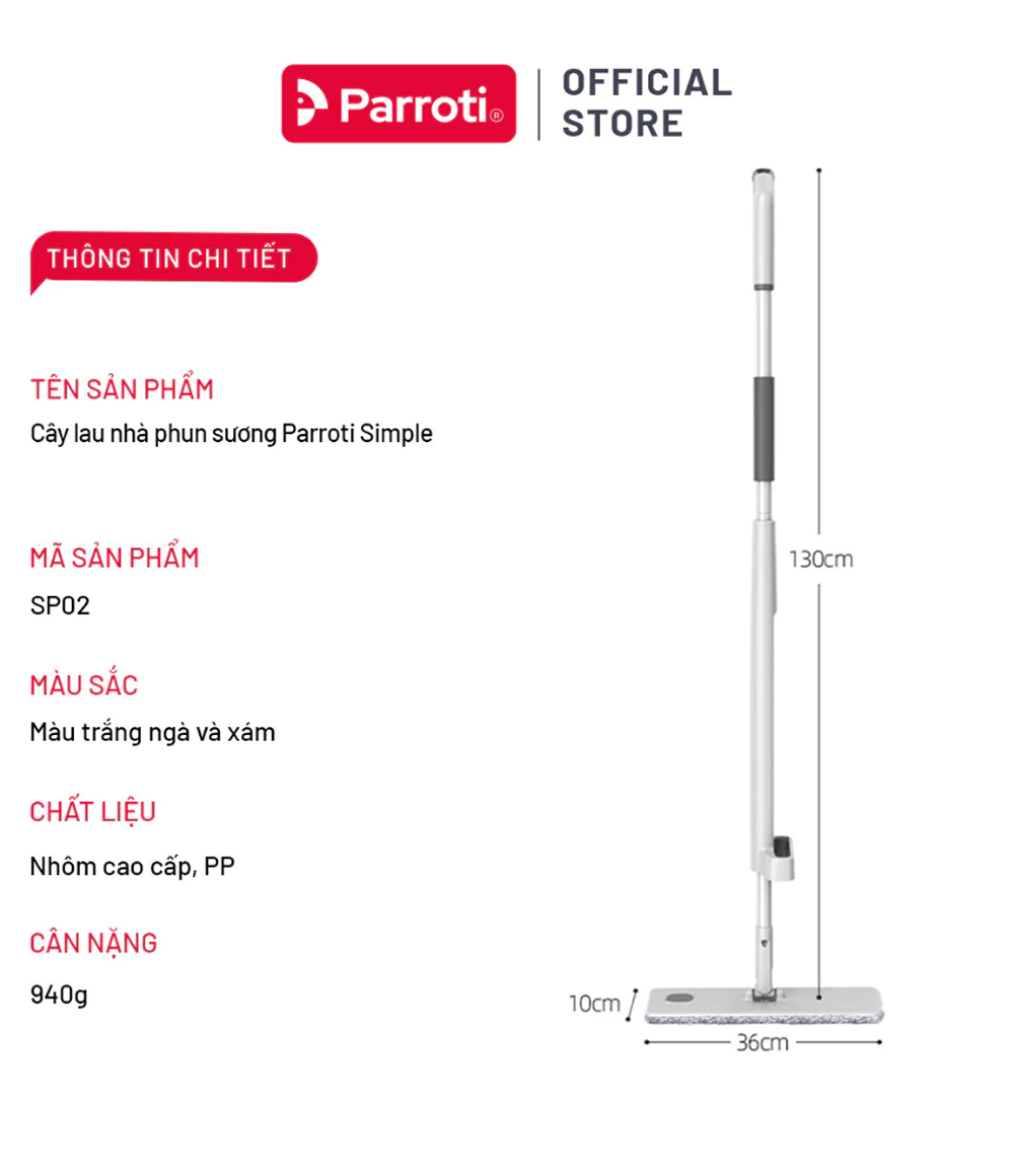Cây lau nhà phun sương tự vắt thông minh Parroti Simple SP02