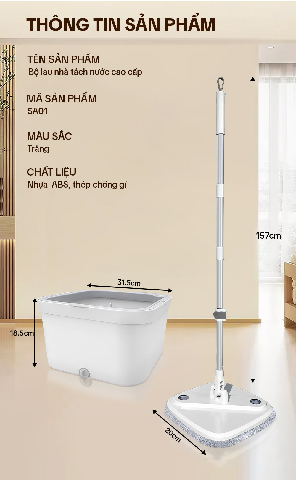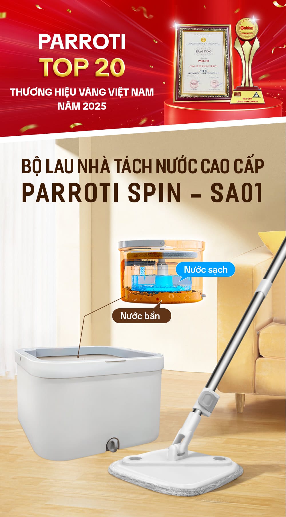 – Tên sản phẩm: Bộ cây lau nhà tự vắt thông minh Parroti Spin – SA01