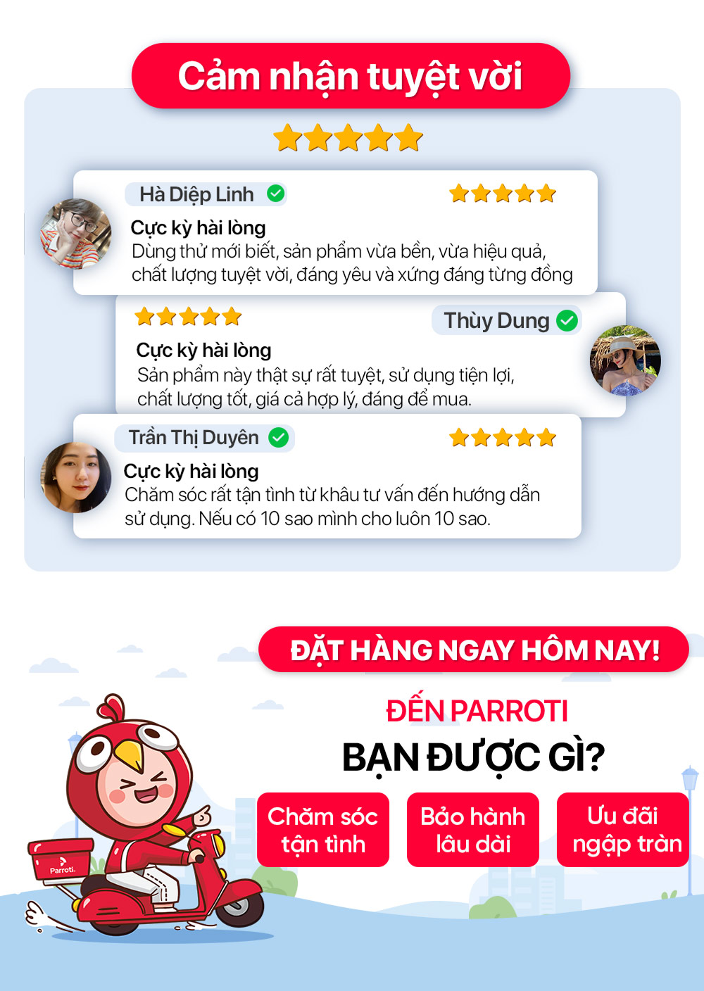 • Parroti đảm bảo sản phẩm đúng như mô tả và hình ảnh