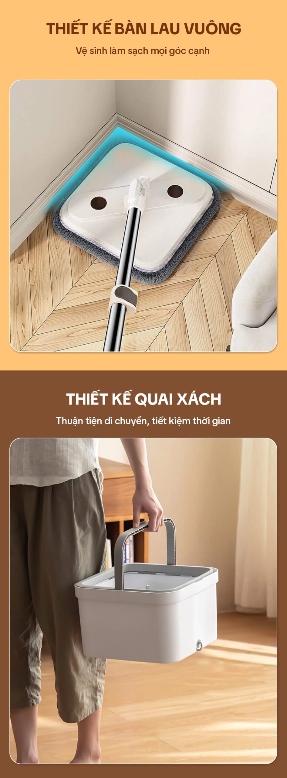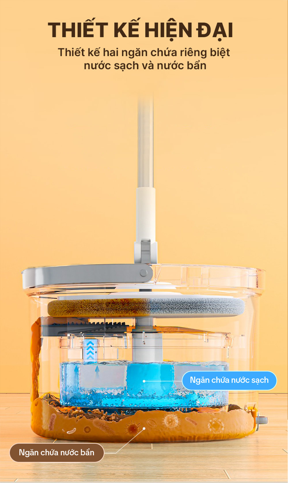 – Ngăn tách hoàn toàn nước bẩn khi giặt và vắt giúp miếng lau luôn sạch bẩn