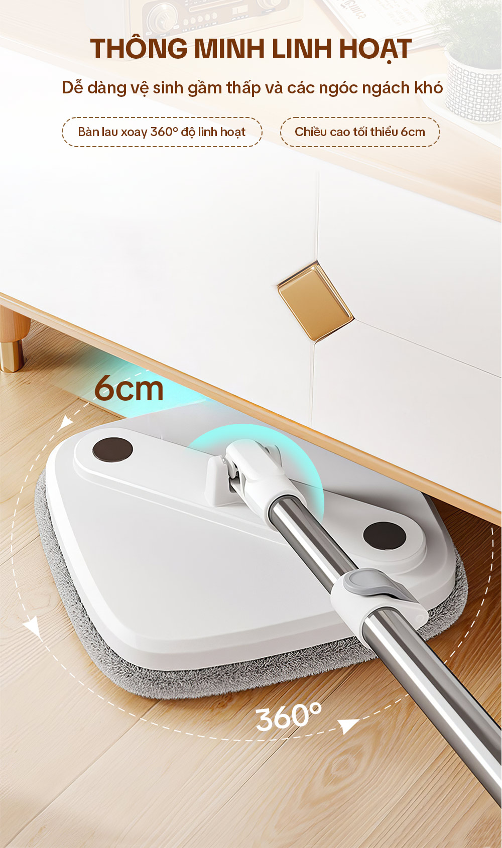 – Cây lau dài 1.53 m bằng inox không rỉ giúp giảm đau lưng khi lau