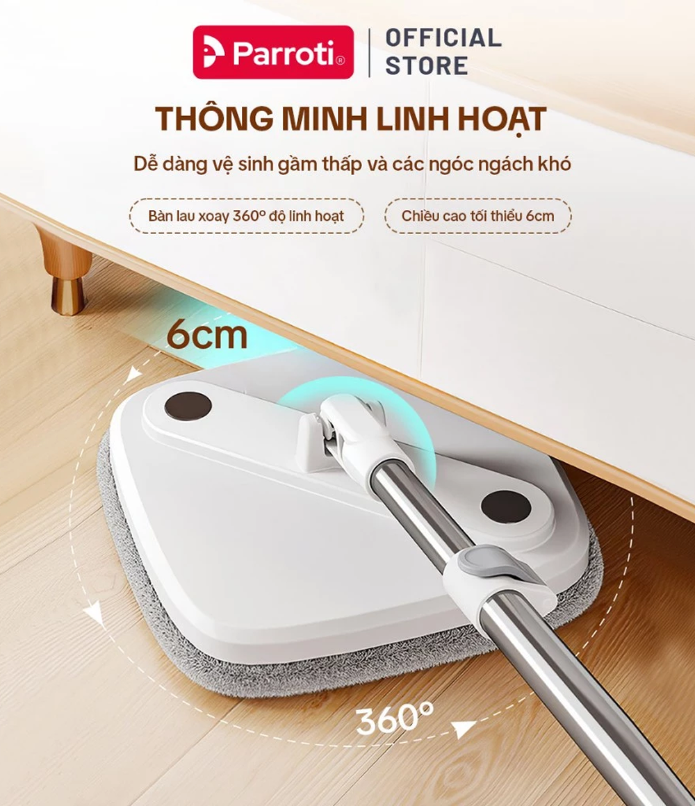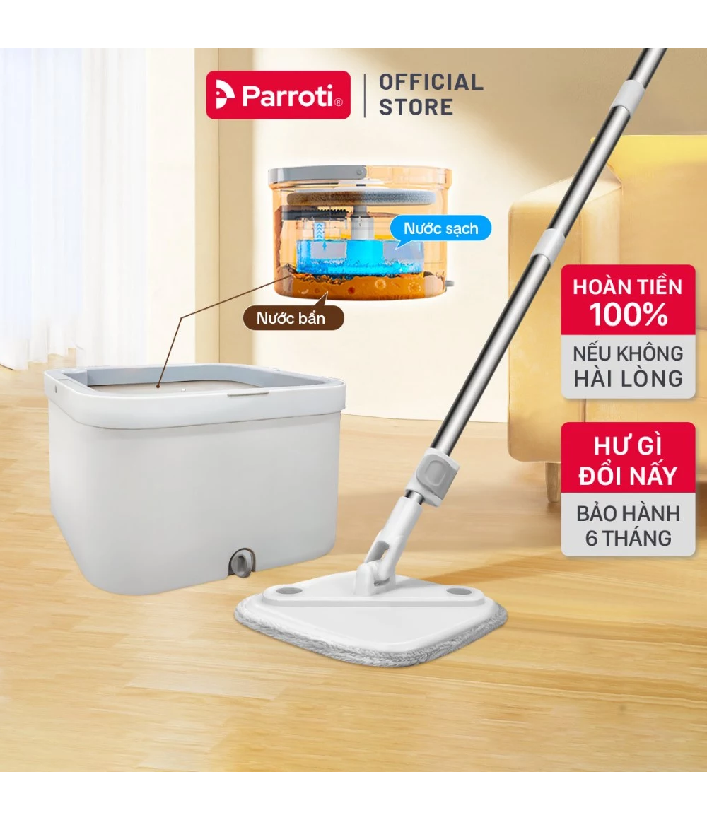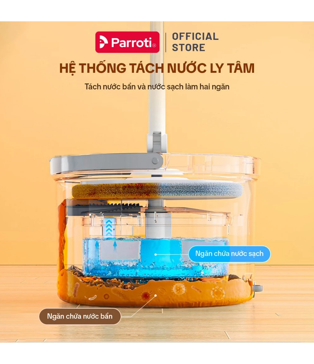 Cây lau nhà tách nước bẩn thông minh, xoay 360 độ Parroti Spin SA01