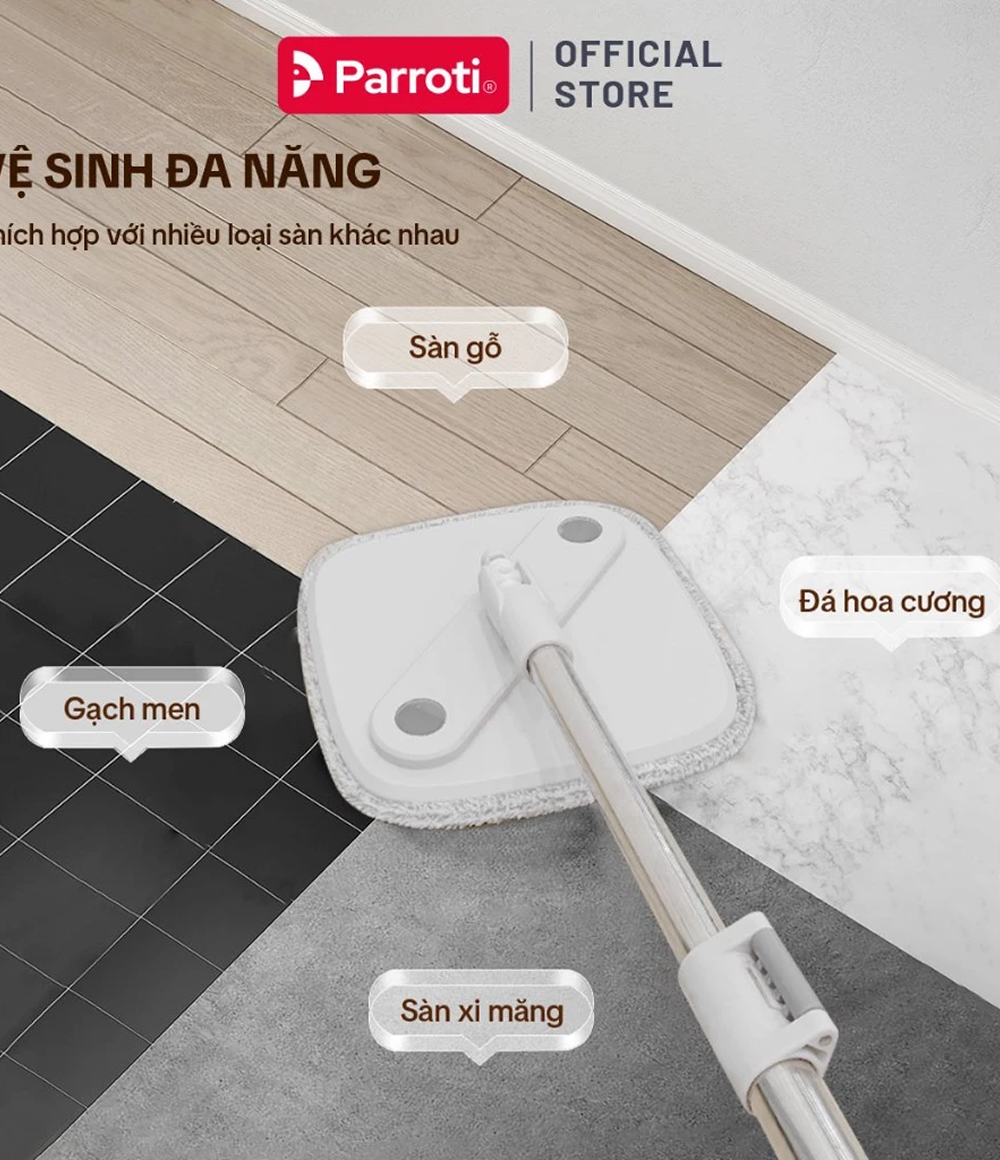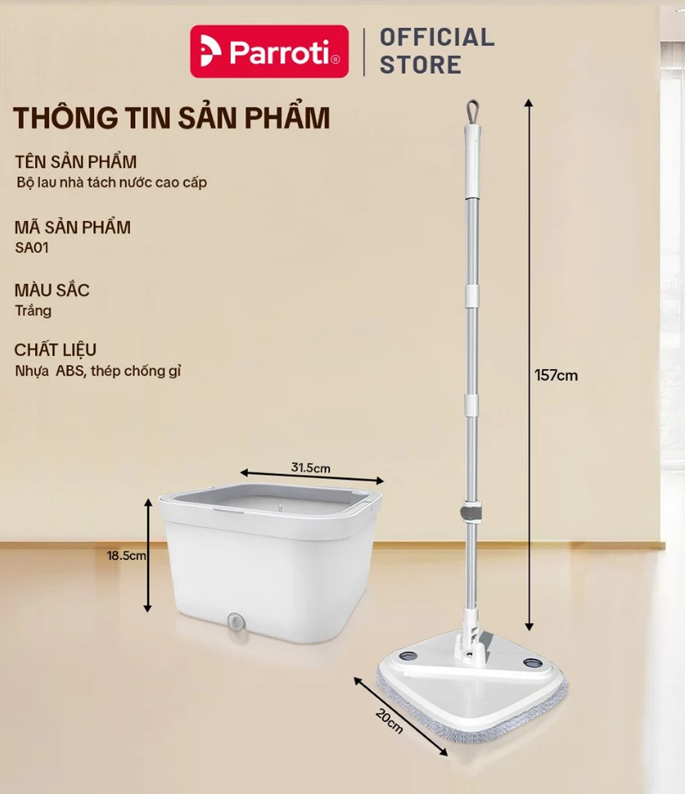 – Tên sản phẩm: Bộ cây lau nhà tự vắt thông minh Parroti Spin – SA01