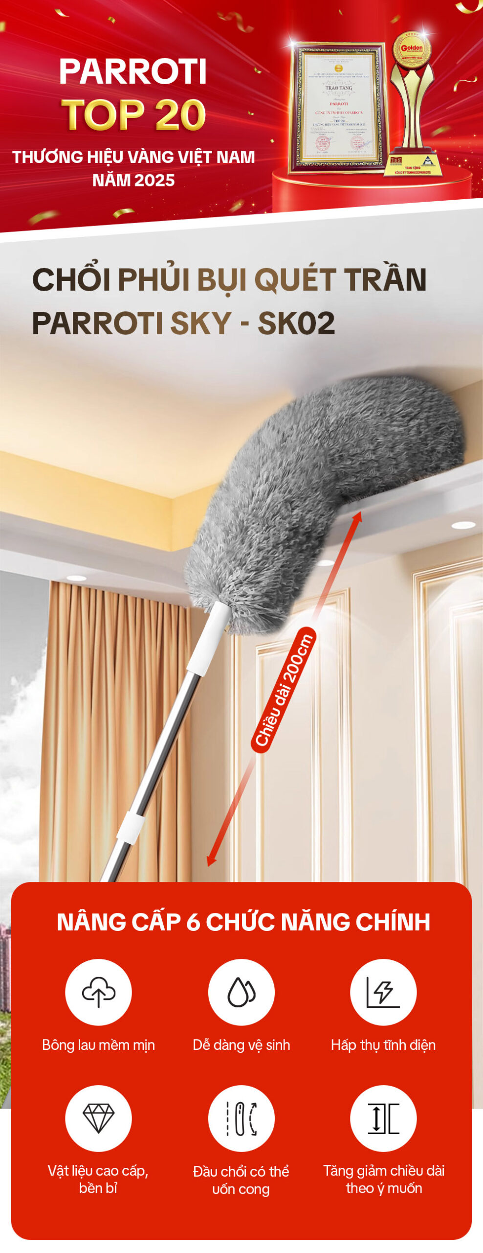 Chổi phủi bụi trần nhà Parroti Sky SK02