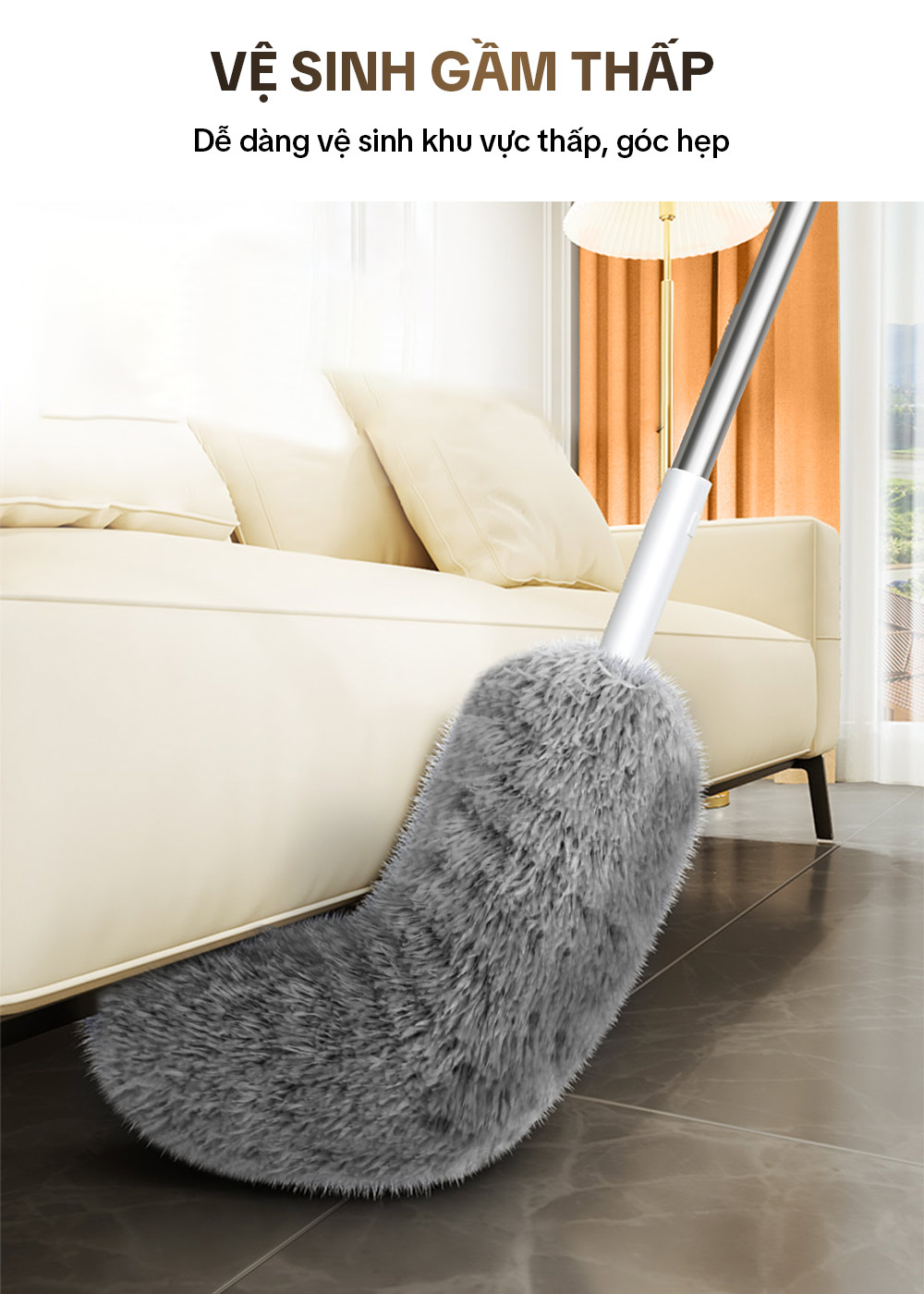 – Thân chổi dài lên đến 160cm, giúp dễ dàng với tới các vị trí cao nhất.