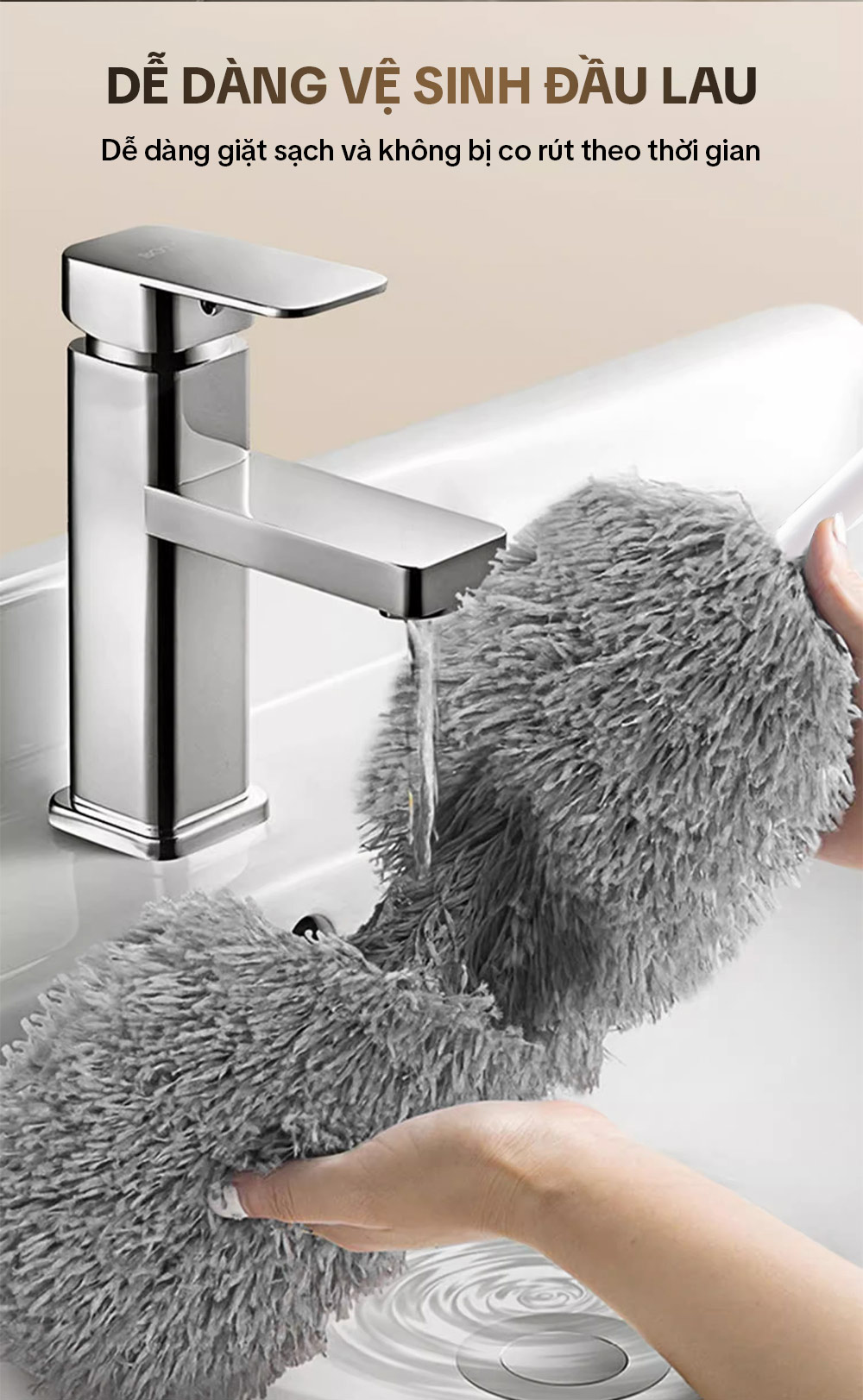 – Bước 3: Tháo bông lau ra khỏi đầu lau, và giặt sạch đầu lau bằng nước sạch