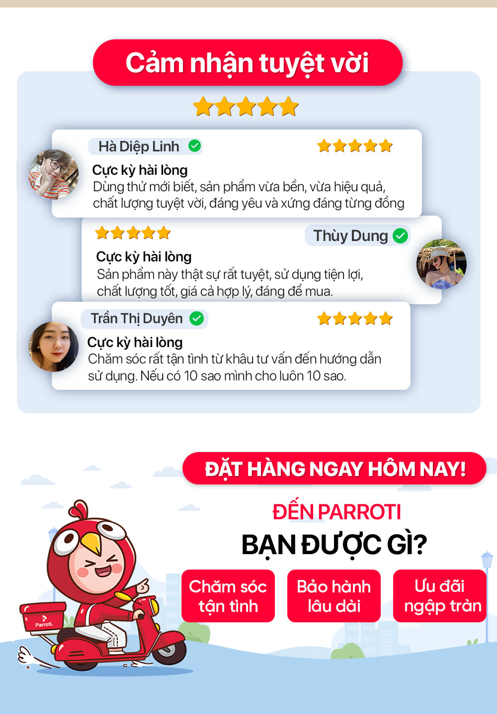 Parroti đảm bảo sản phẩm đúng như mô tả và hình ảnh