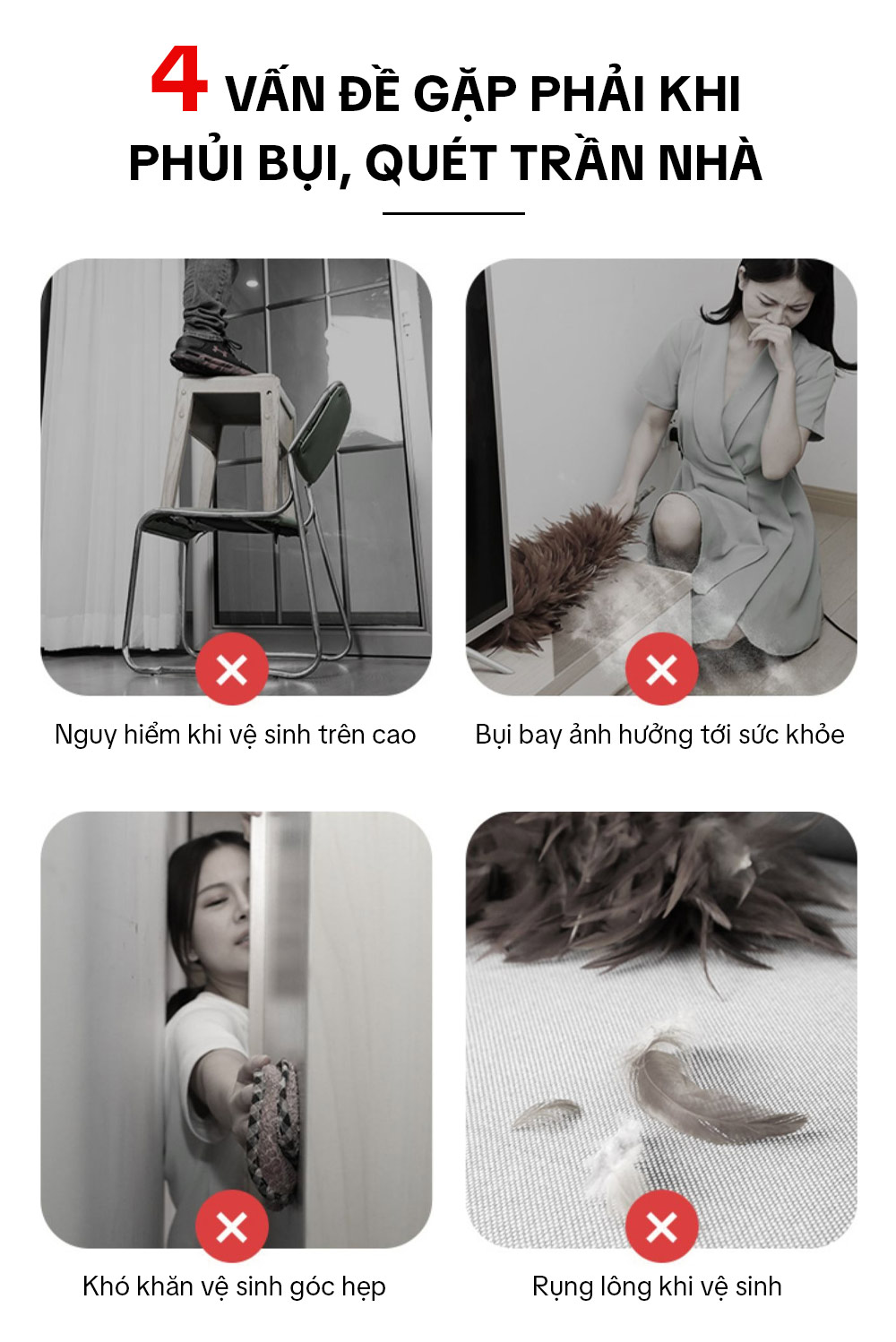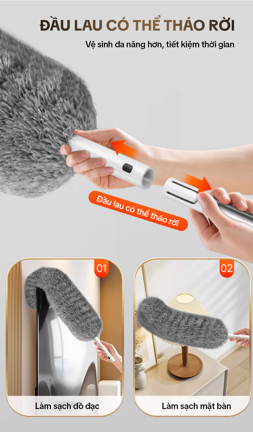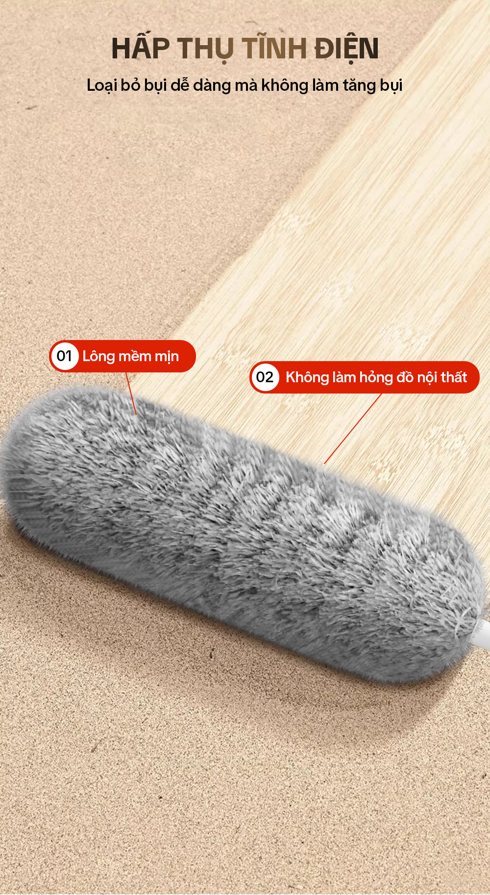 – Bông lau mềm mại dạng sợi san hô giúp làm sạch lại vết bẩn, mạng nhện cực nhanh.