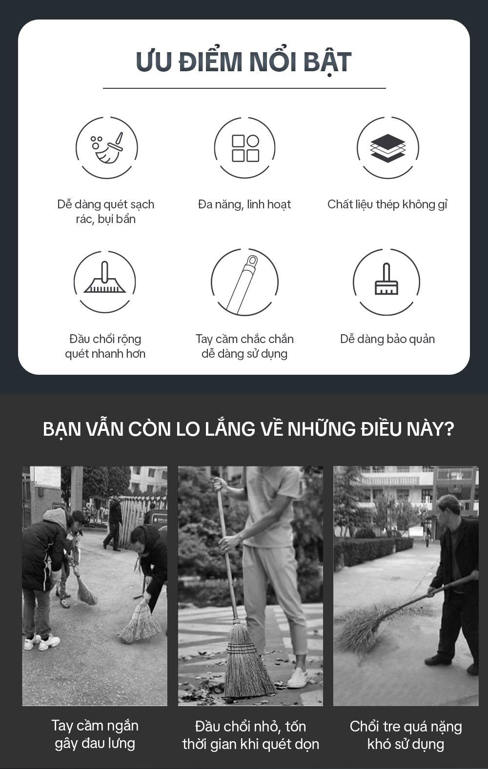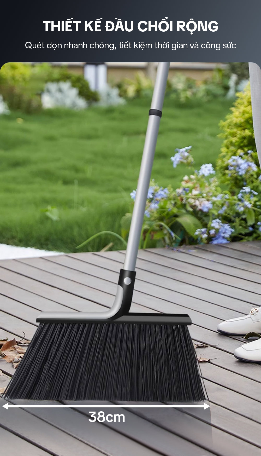 – Bàn chổi rộng 38 cm giúp tiết kiệm thời gian khi quét trên sân vườn rộng và khu vực rộng lớn