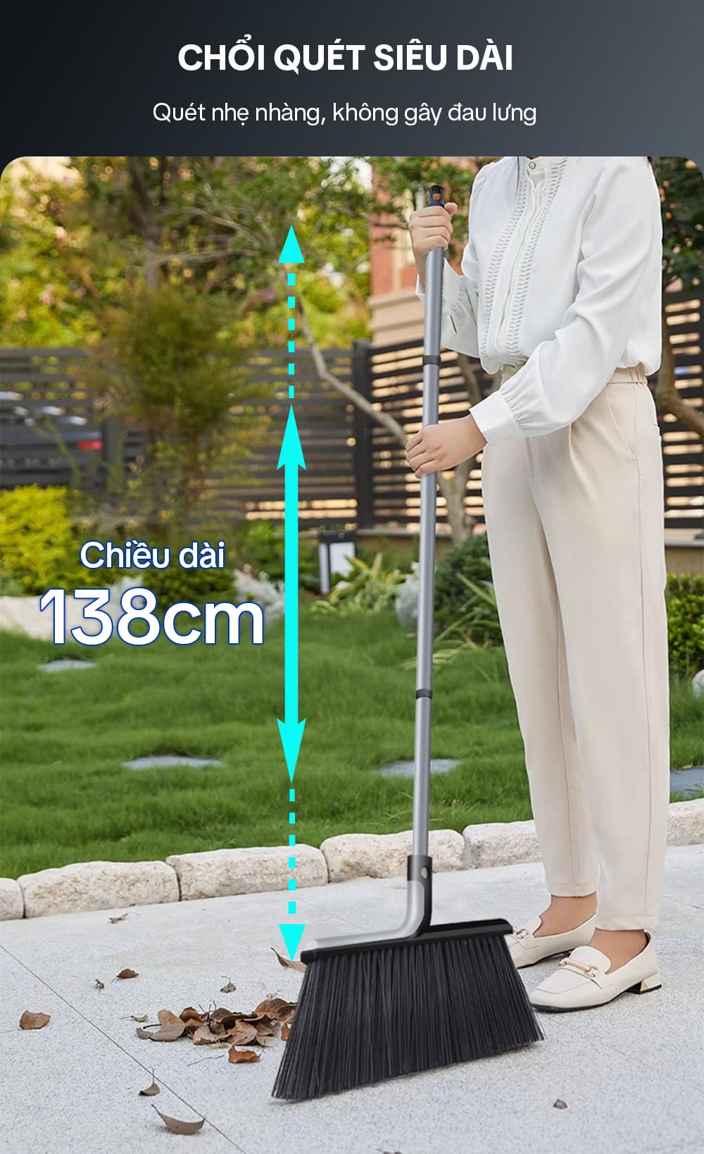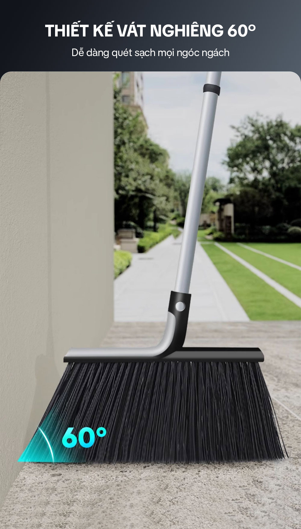 – Đầu chổi thiết kế công thái học với góc nghiêng giúp dễ giàng thao tác và sử dụng