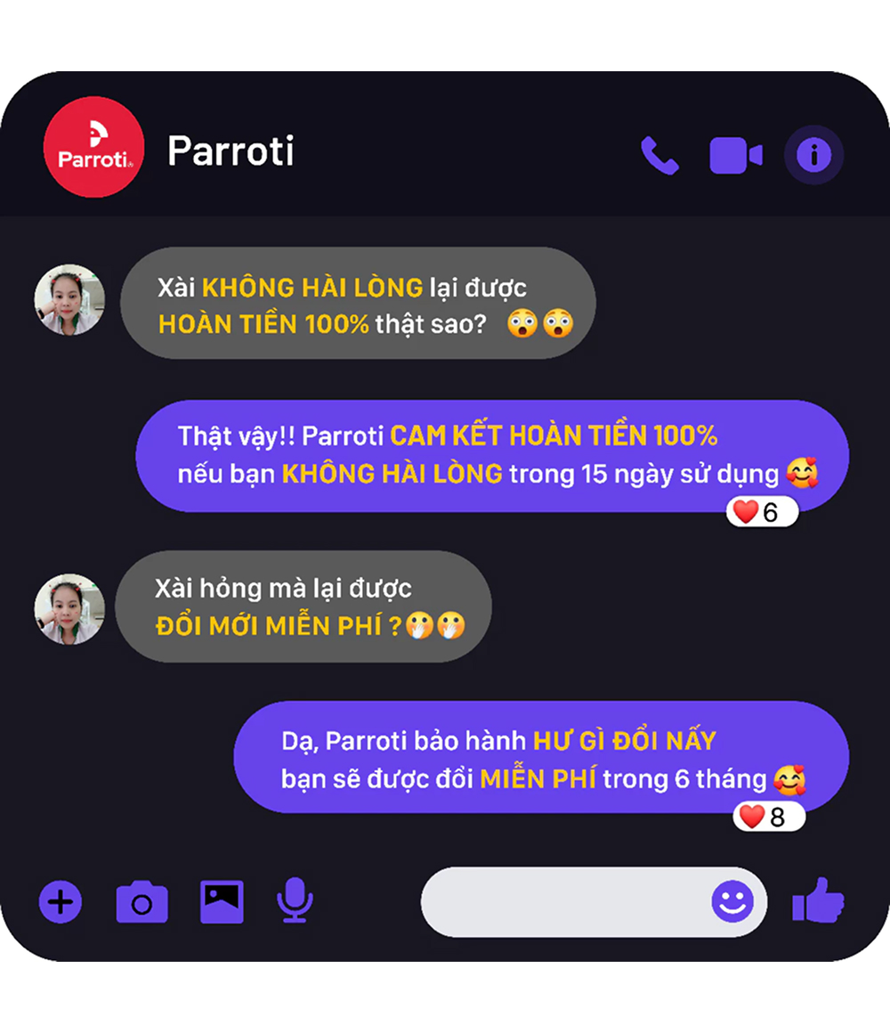 Parroti rất sẵn lòng lắng nghe các góp ý của quý khách hàng nhằm cải thiện chất lượng sản phẩm và dịch vụ.