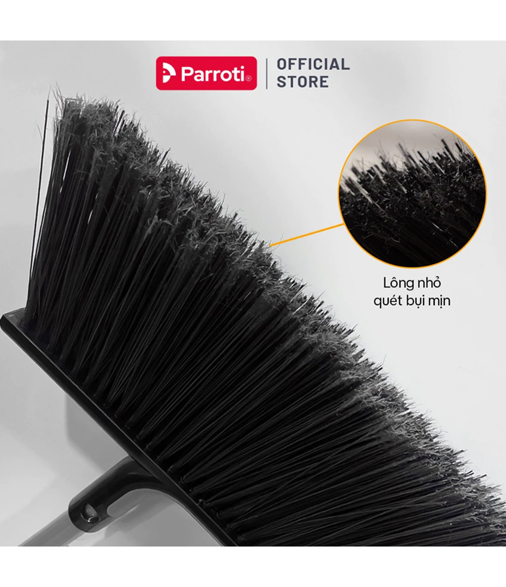 – Lông chổi dày phần tiếp xúc với mặt sàn được làm nhỏ giúp dễ dàng làm sạch cả bụi mịn