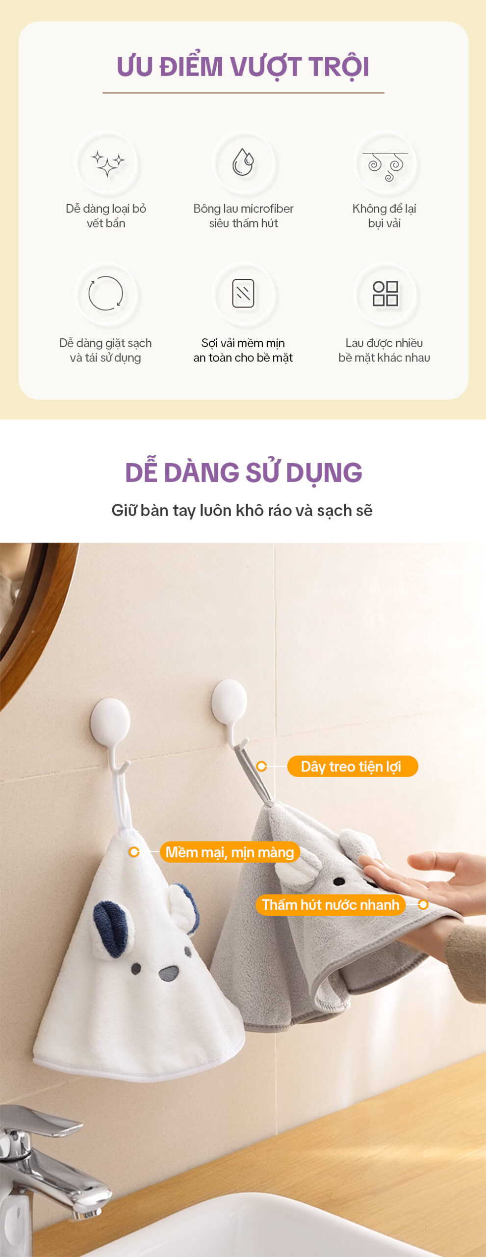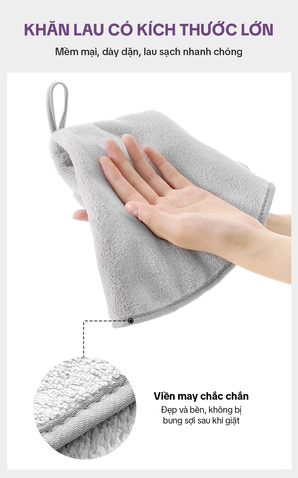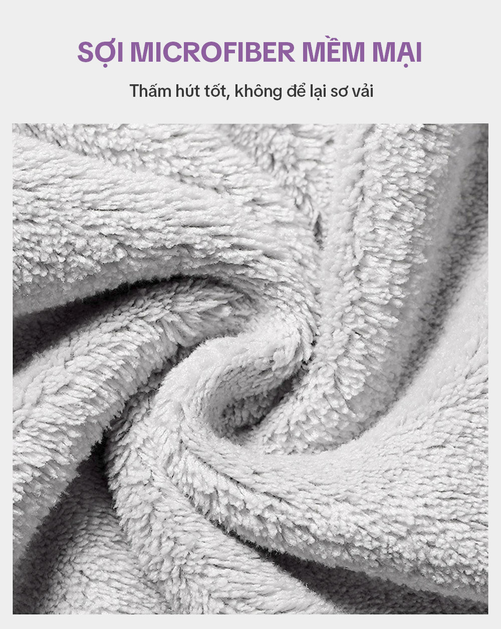 – Làm từ sợi Microfiber siêu thấm nước và siêu bền, không có bụi vải.