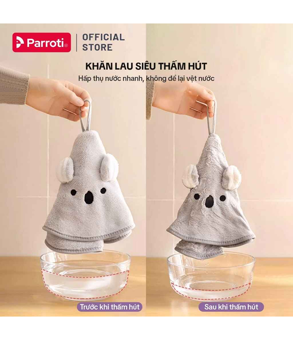 Combo 2 khăn lau tay nhà bếp, đa năng hình thú siêu thấm hút Parroti Fiber FB04