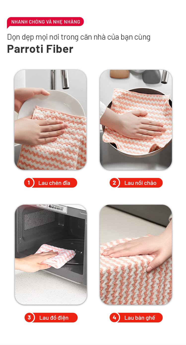 – Tên sản phẩm: Khăn lau bếp đa năng Parroti Fiber