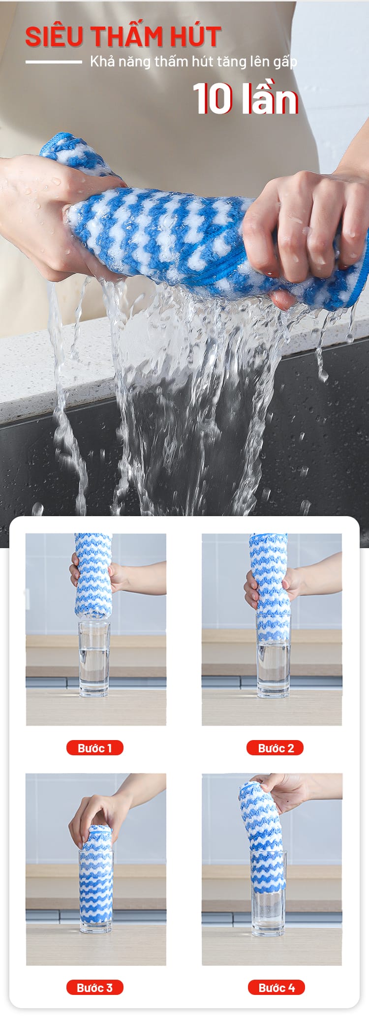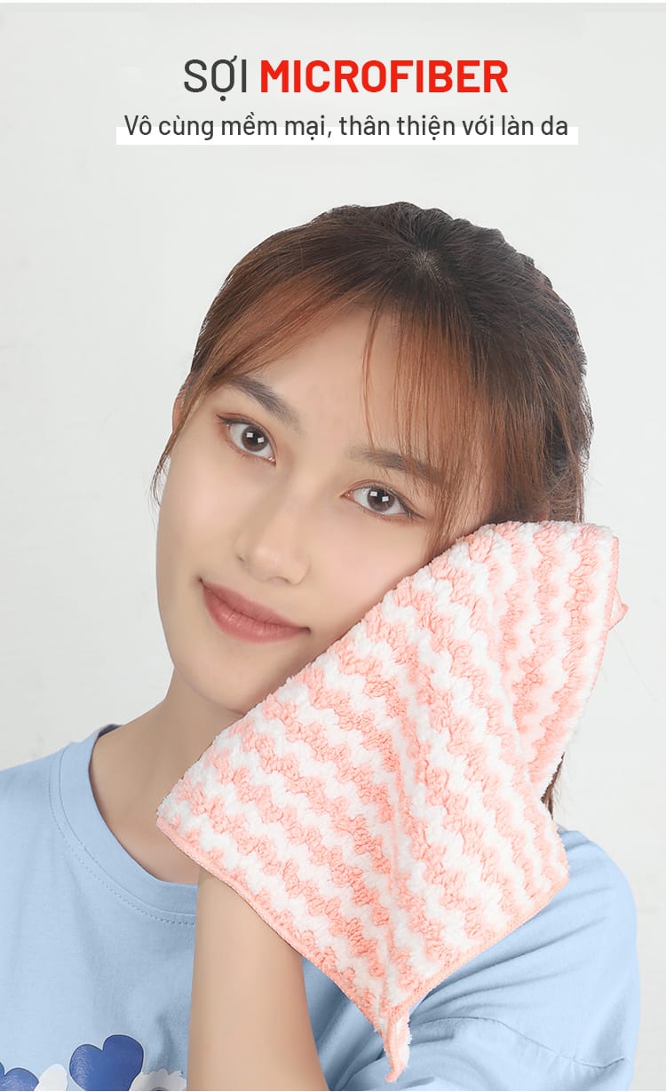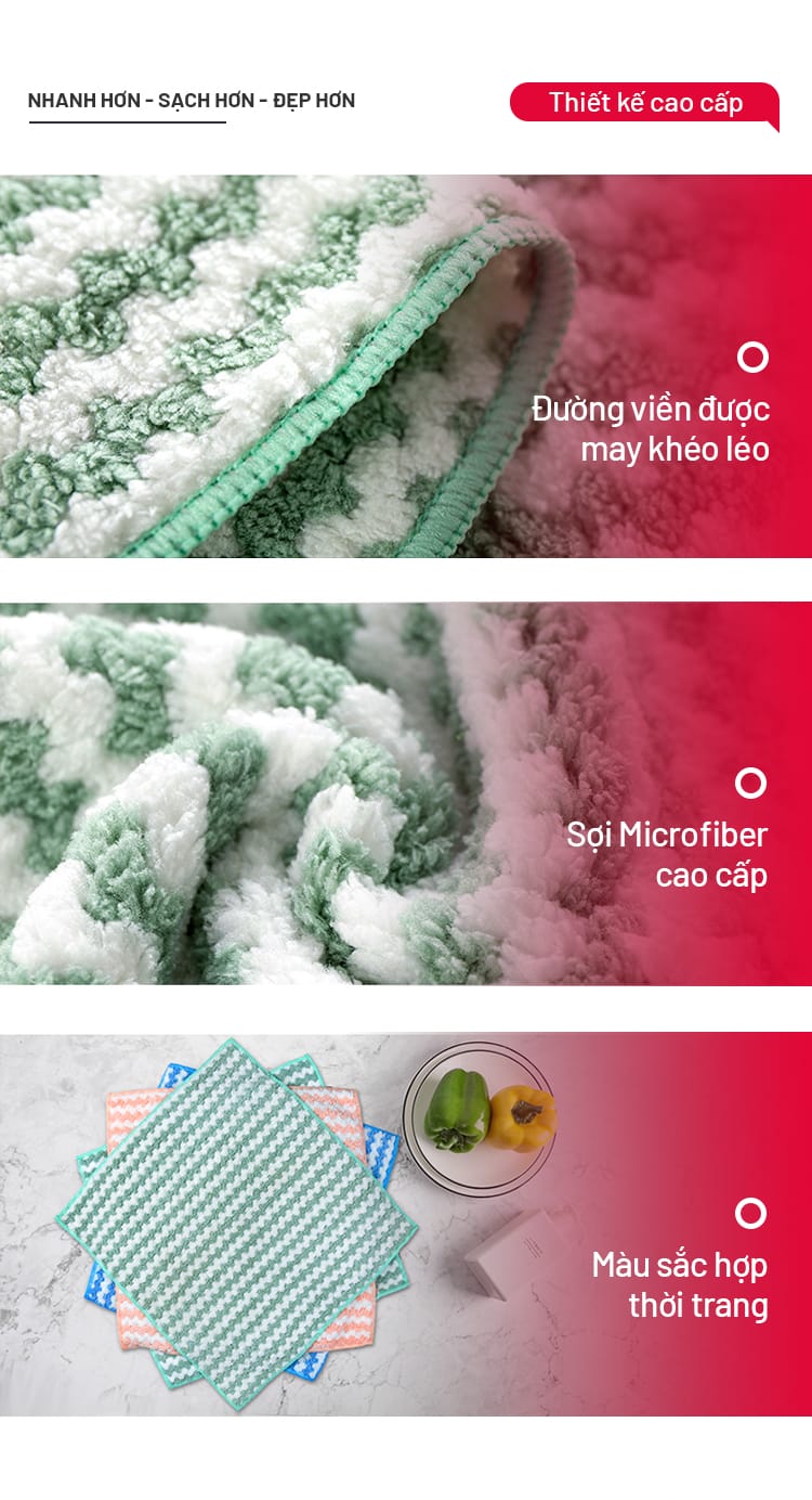 – Làm từ sợi Microfiber siêu thấm nước và siêu bền, không có bụi vải