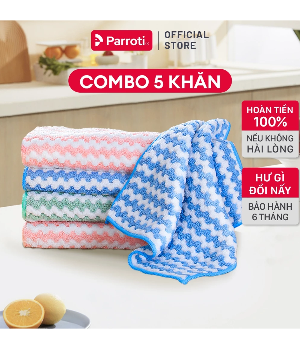 Combo 5 khăn lau bếp đa năng siêu thấm hút Parroti Fiber FB02
